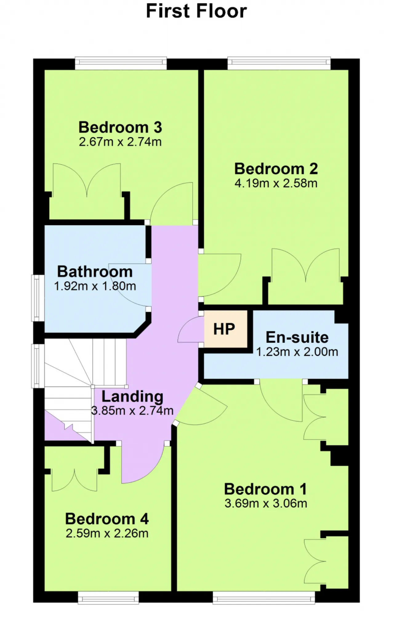 Landing 3.85m x 2.74m Carpeted stairs and landing with access to hot-press.