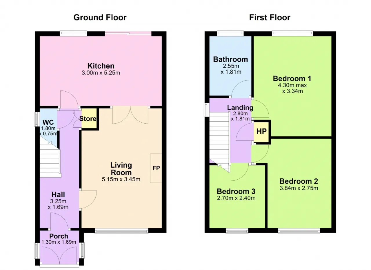 Bedroom 1 4.30m x 3.34m Double bedroom to the rear of the property with fitted wardrobes and carpet flooring. Large window providing natural light.