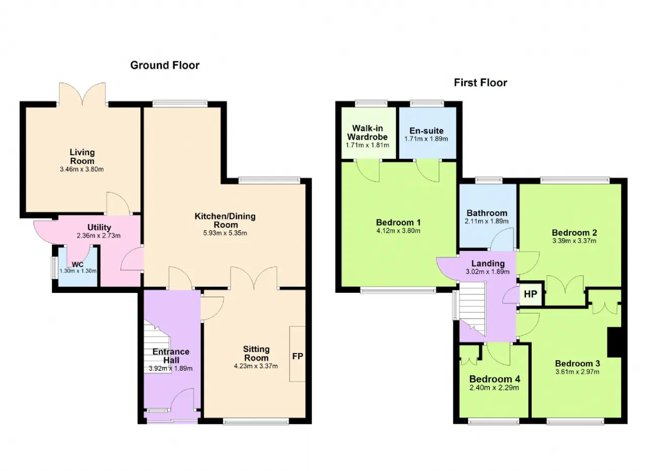 Entrance Hall 3.92m x 1.89m Wood flooring, Radiator cover and coving to ceiling. Understairs storage.