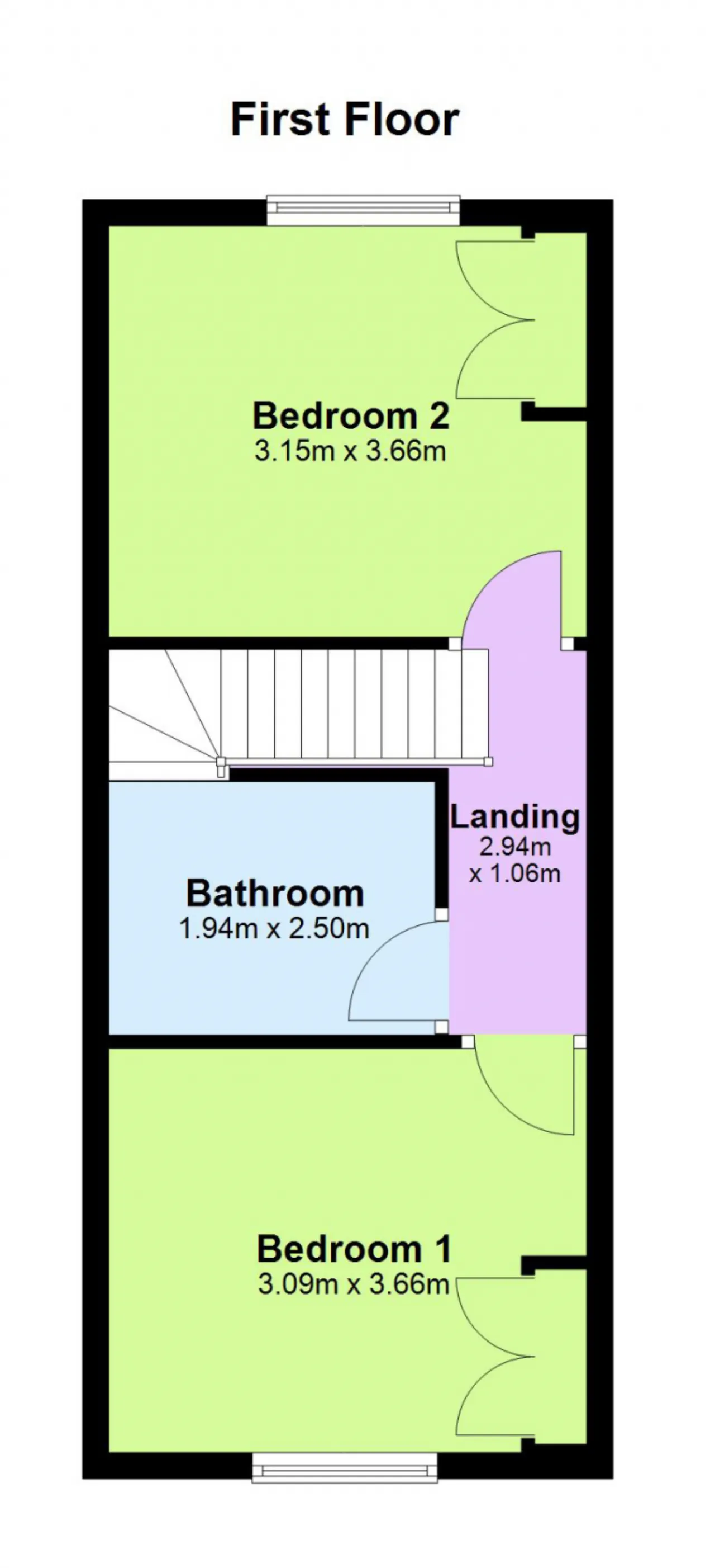 Bedroom 2 3.15m x 3.66m Double room with fitted wardrobes & timber flooring. Window to the rear of the property.