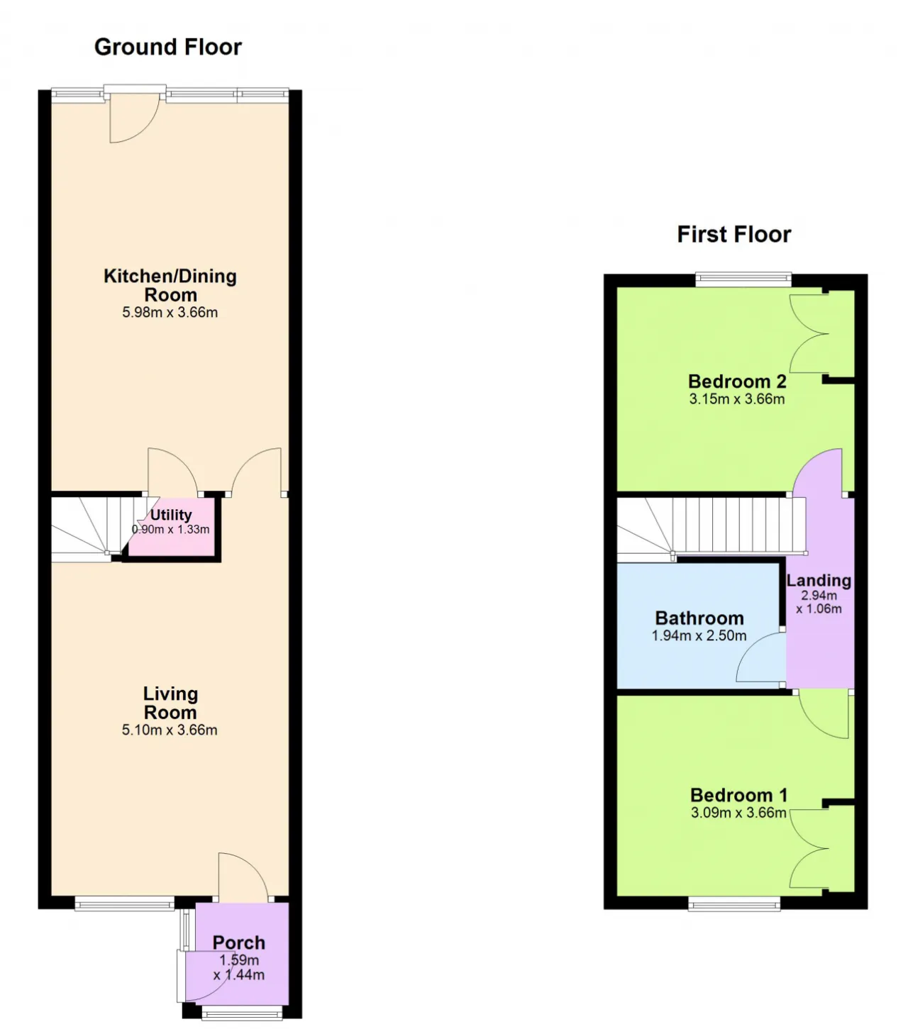 Extending to approx. 78 sqm / 840 sq.ft., the property briefly comprises an entrance porch, Livingroom with a feature fireplace, open plan kitchen/dining / living room that leads to a low maintenance sunny rear garden. On the first floor there are 2 double bedrooms and a large family bathroom.