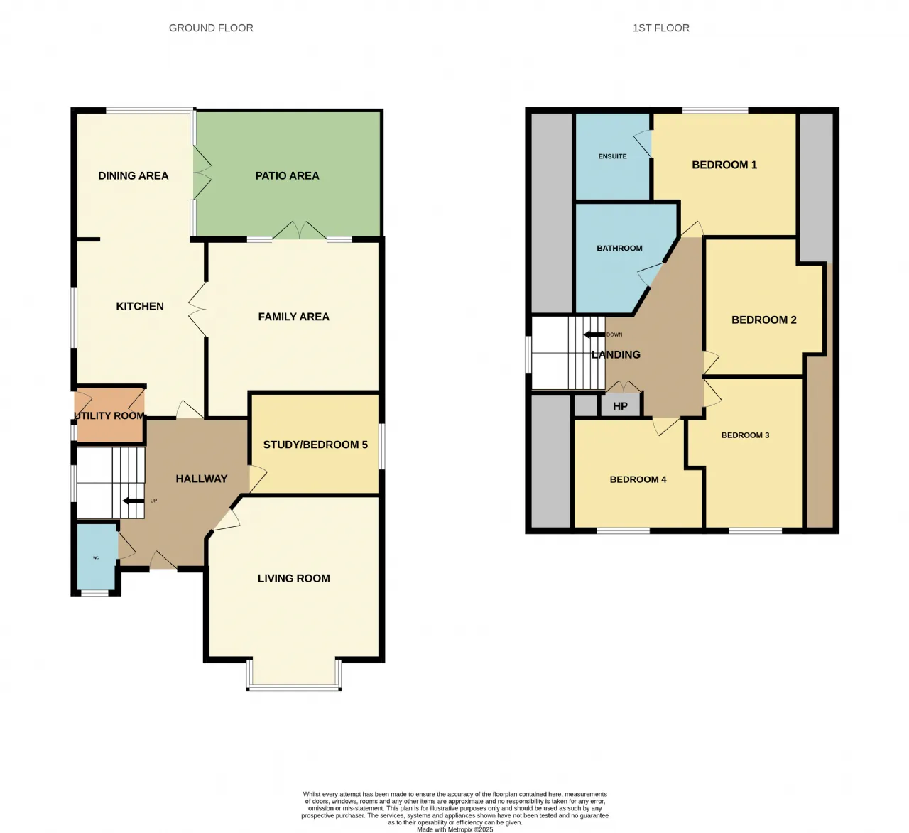 Landing 4.4m x 2.4m With carpet, airing cupboard, attic hatch, radiator cabinet.