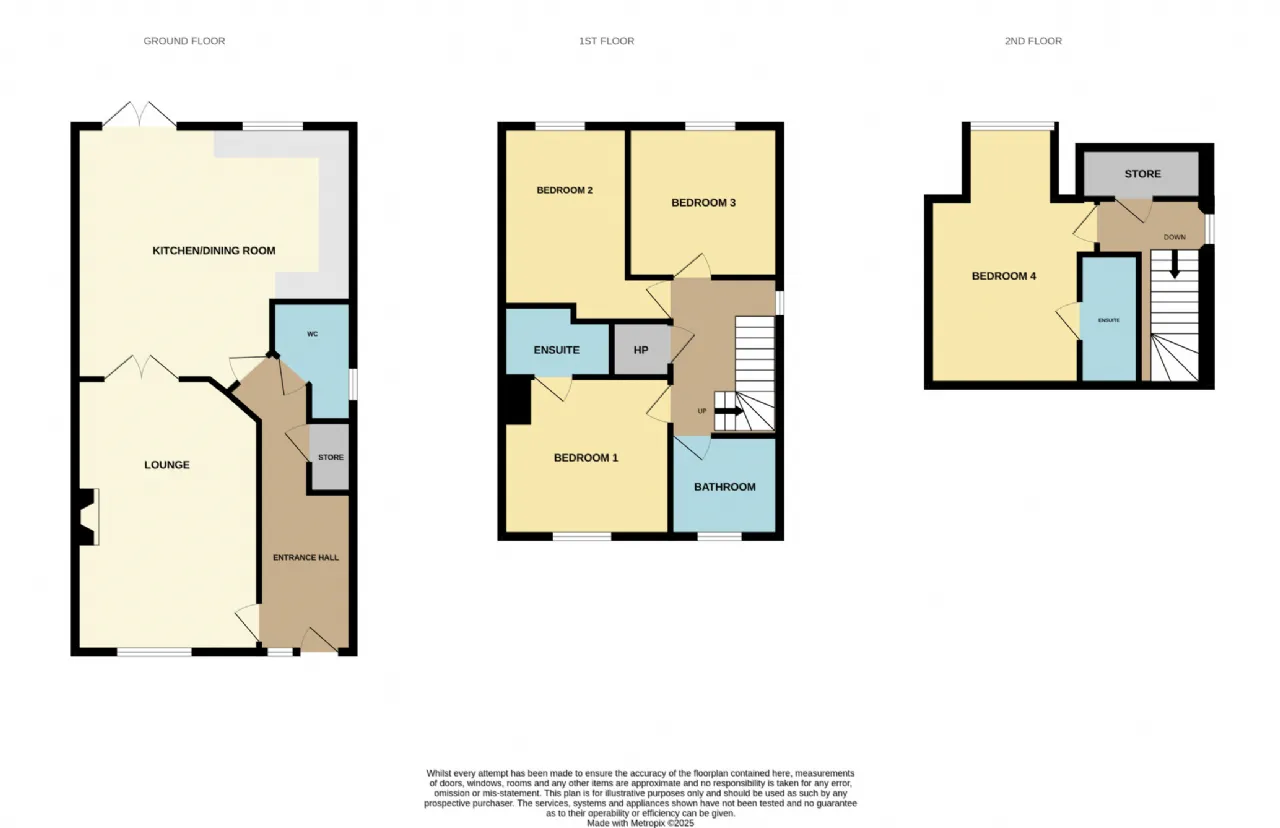 En-Suite 2.6m x 1.2m With shower, wc, whb, tiled floor, tiled splashback, shaving light, mirror, heated towel rail, extractor, roof window.