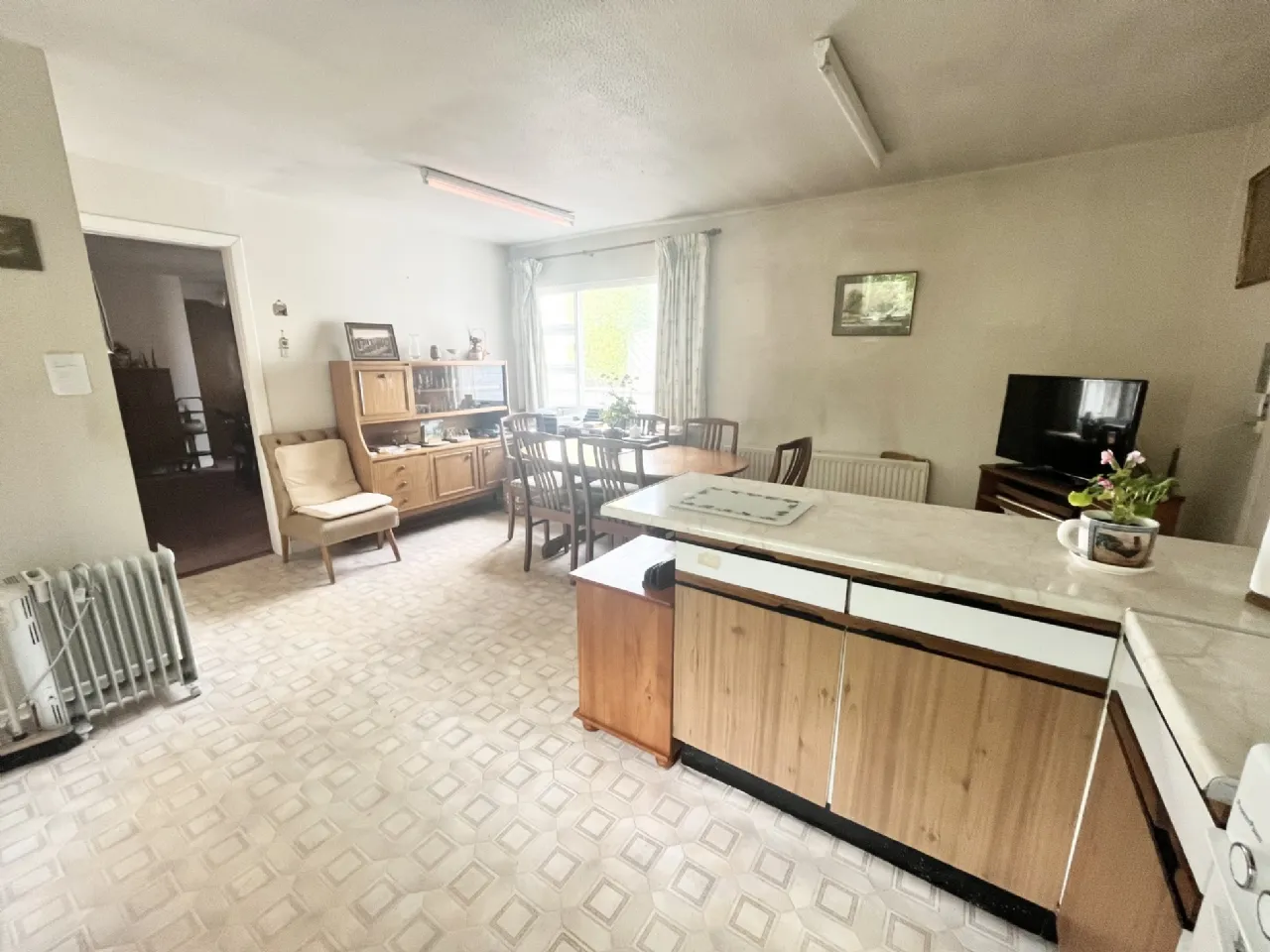 Kitchen Dining Room 5.0m x 4.7m With dual aspect, fitted kitchen, electric cooker, extractor, fridge/freezer, dishwasher, vinyl flooring, tiled splashback.