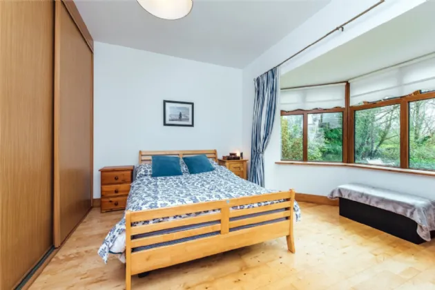 Bedroom 3 3.8m x 3.8m To front with beech flooring, fitted sliding wardrobes, bay window.