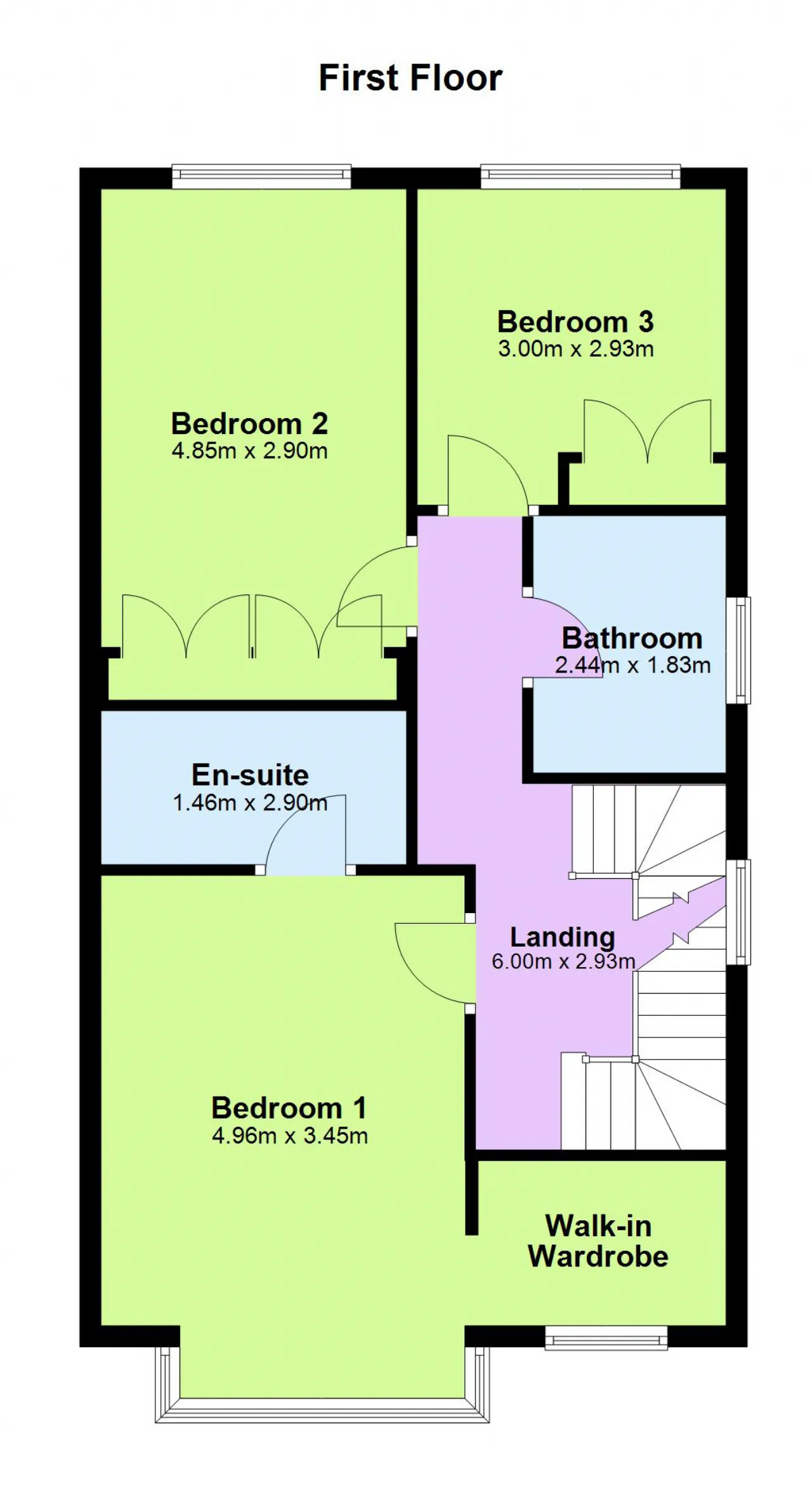Bedroom 2 4.85m x 2.90m Large double bedroom with quality timber flooring and extensive fitted wardrobes.