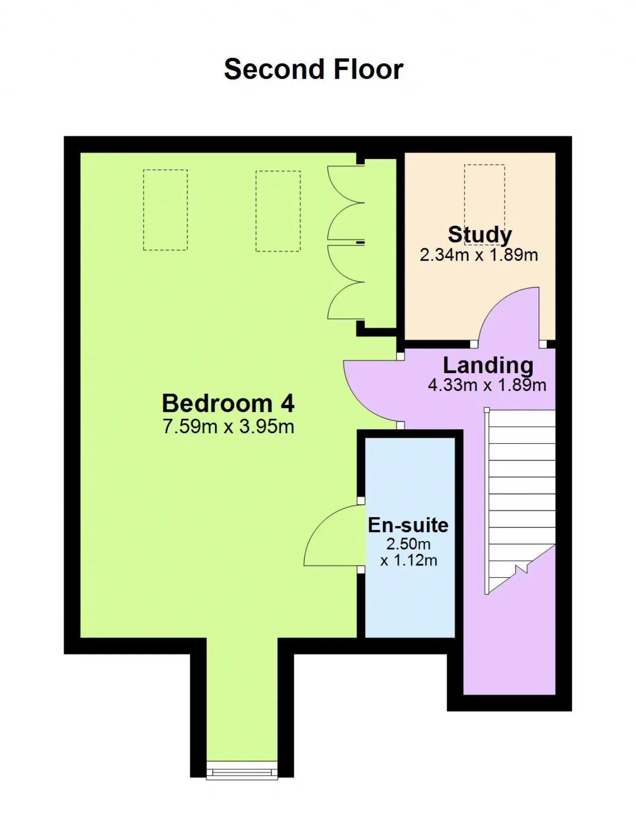 Bedroom 4 7.59m x 3.95m Expansive attic bedroom with timber flooring, extensive fitted wardrobes & storage in eves. Featuring two Velux windows and front window with shutters.