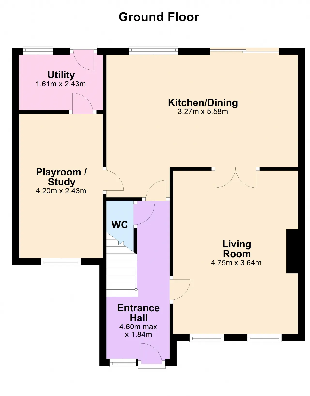 This property offers generous room proportions ideal for modern family living, including a utility room, guest wc whilst on the first floor there are 4 good sized bedrooms, master bedroom with en-suite showering facilities. The large rear garden offers a generous outdoor space, suitable for an extension, with an extra wide side entrance with block built shed.