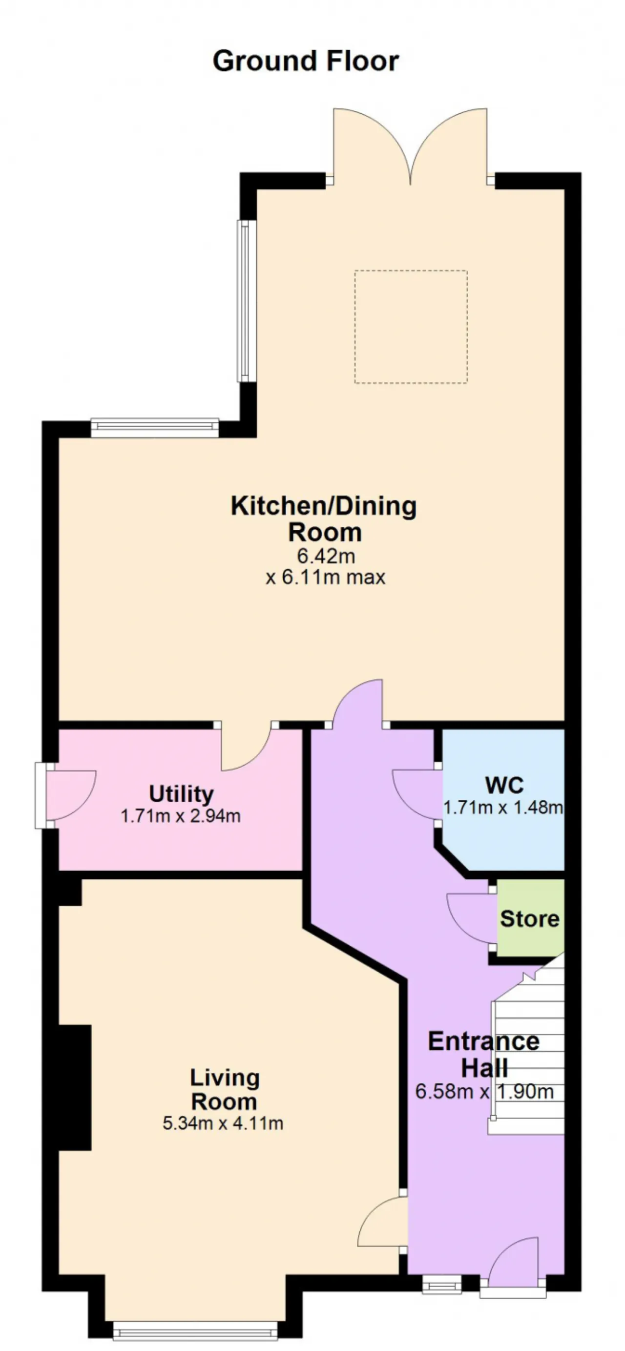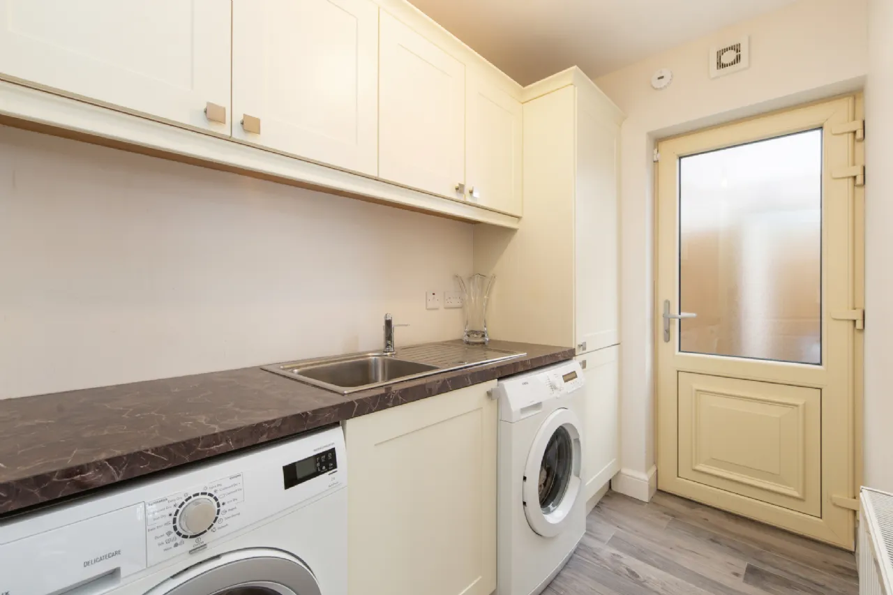 Utility Room 1.71m x 2.94m With fitted presses, sink unit and plumbed for WM & dryer. High energy efficient washing machine and dryer included in sale.