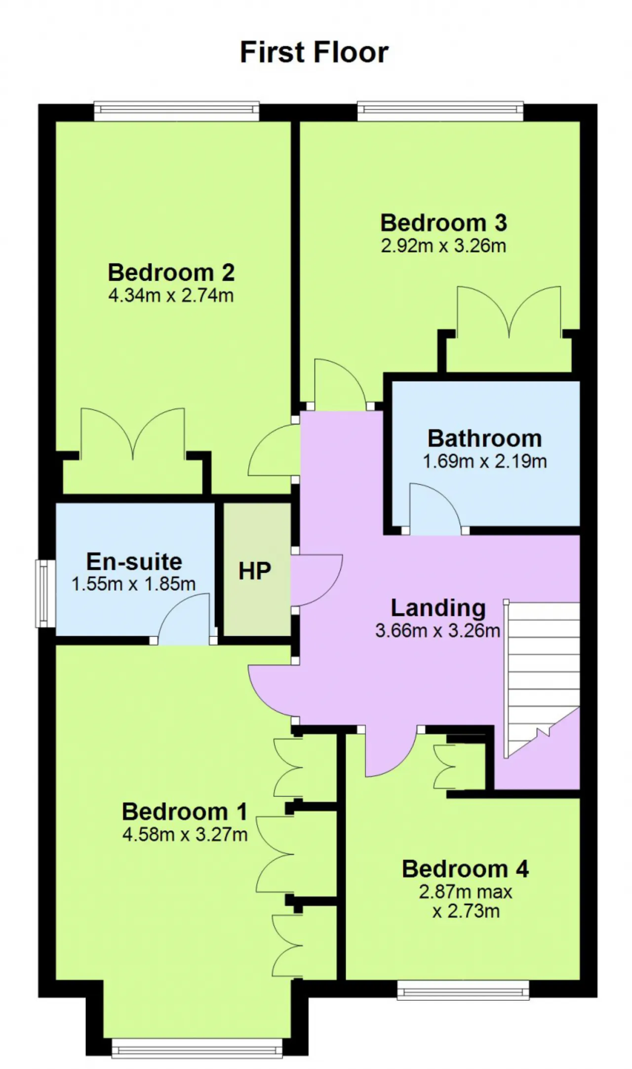 Bedroom 2 4.34m x 2.74m With fitted wardrobes & timber flooring.