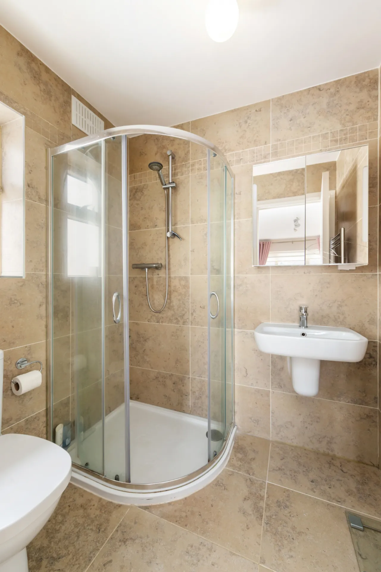 Bathroom 1.69m x 2.19m With full bathroom suite and shower over bath. Fully tiled.