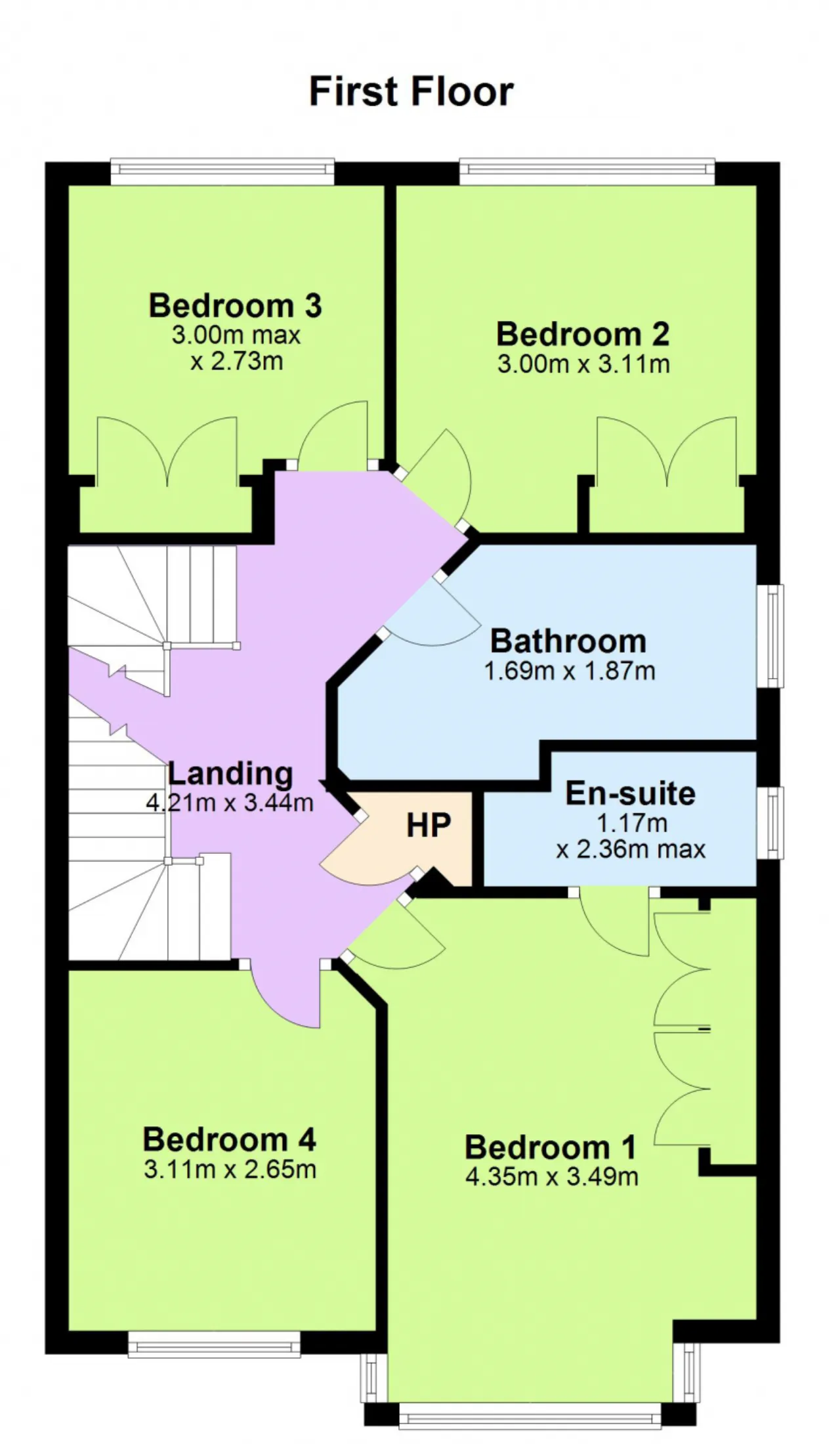 Bedroom 1 4.35m x 3.49m Double bedroom with carpeted flooring and quality fitted wardrobes.