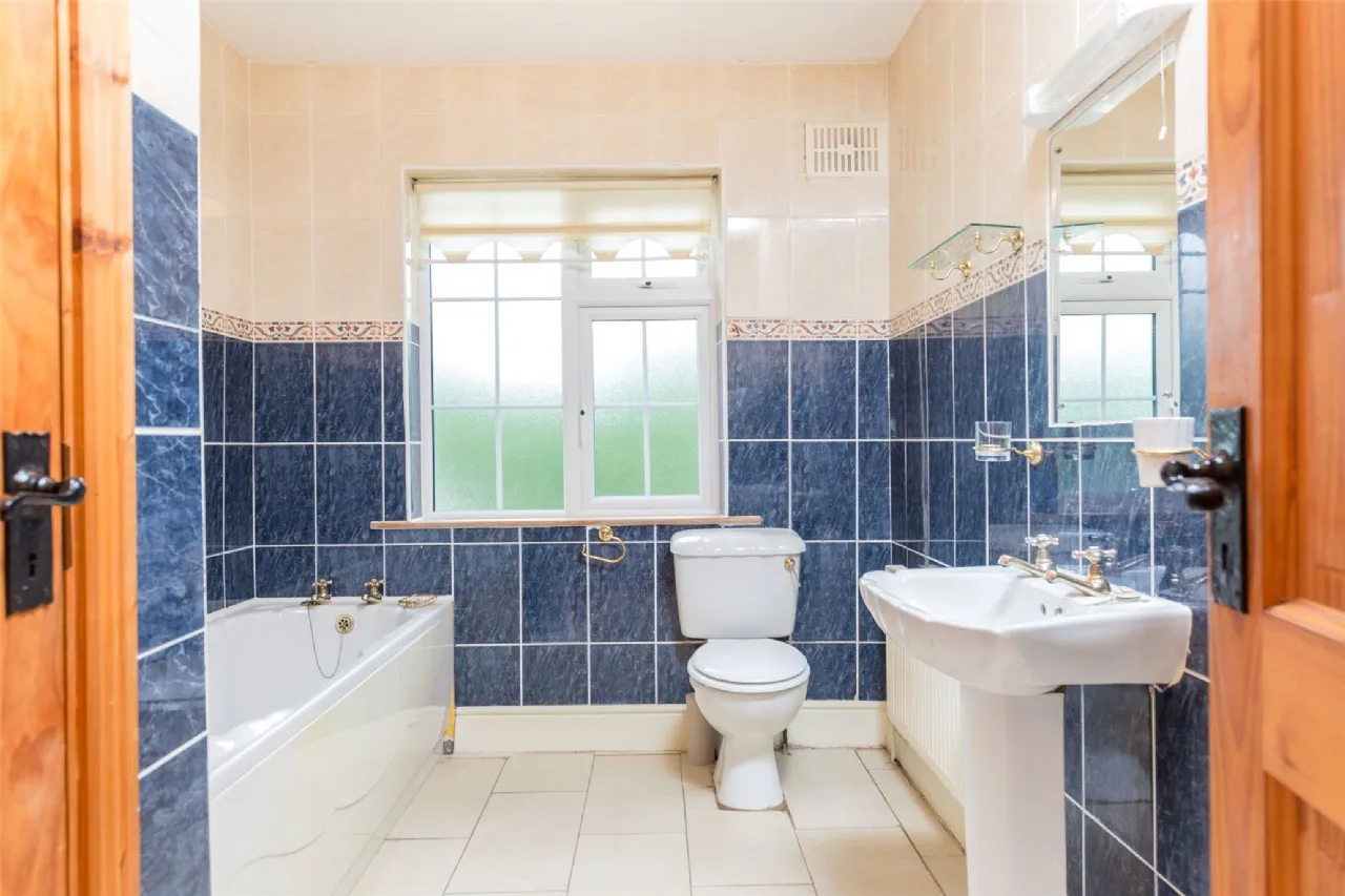 En-Suite 2.108 x 1.908 Toilet. Sink. Bath. Tiled floor & walls.