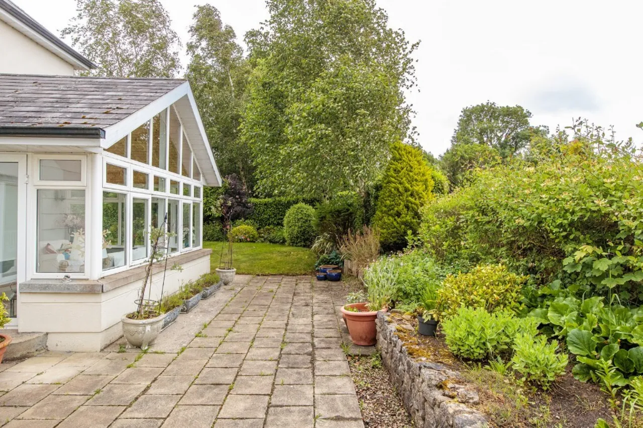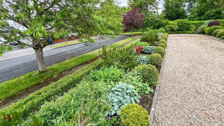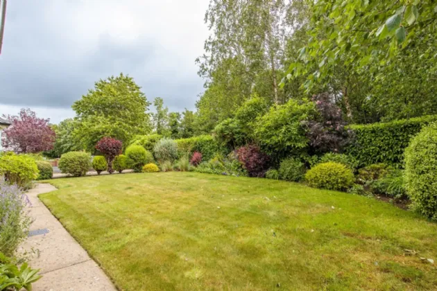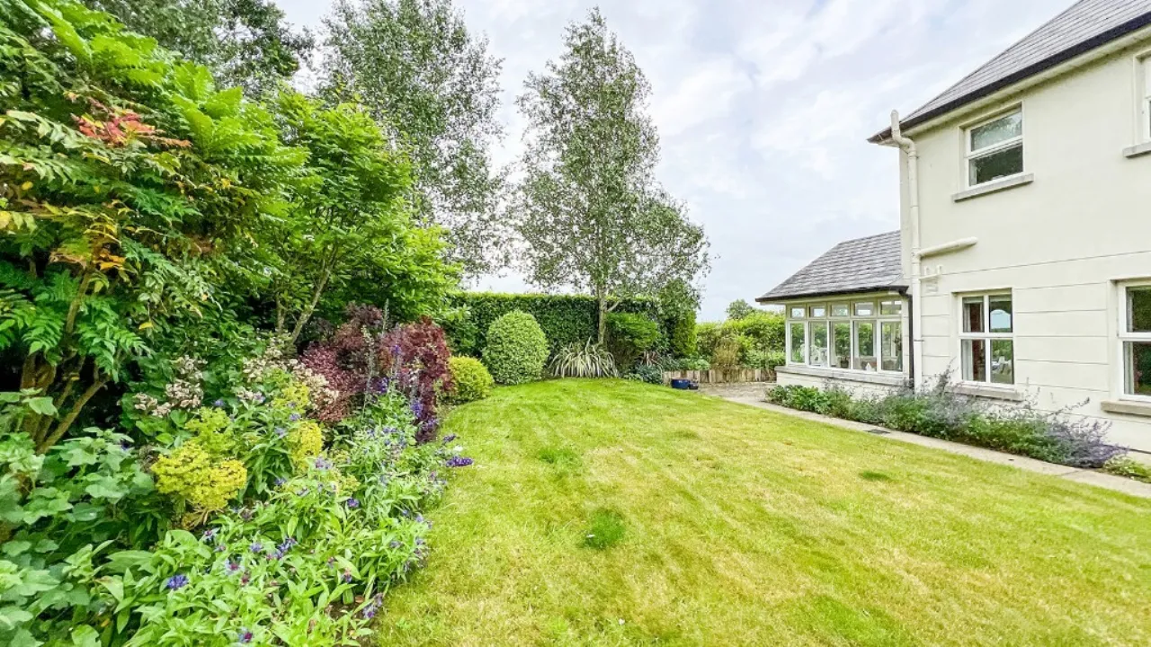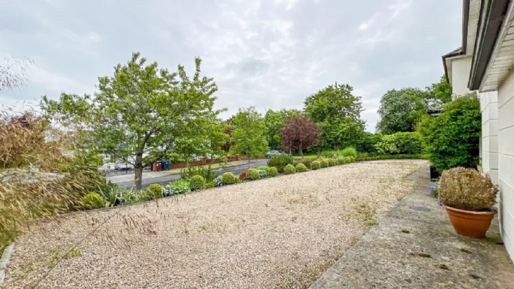 This delightful home is set within generous, family-oriented gardens that offer both beauty and functionality. The lush green lawn provides plenty of space for children to play, while mature trees and neatly trimmed hedges create a safe and private environment for the whole family to enjoy.