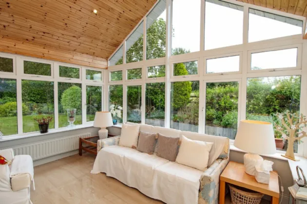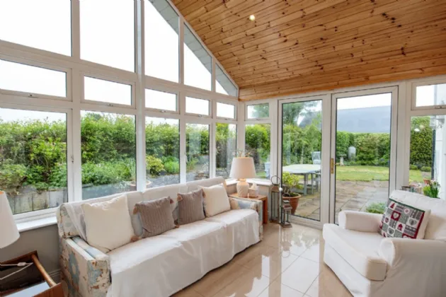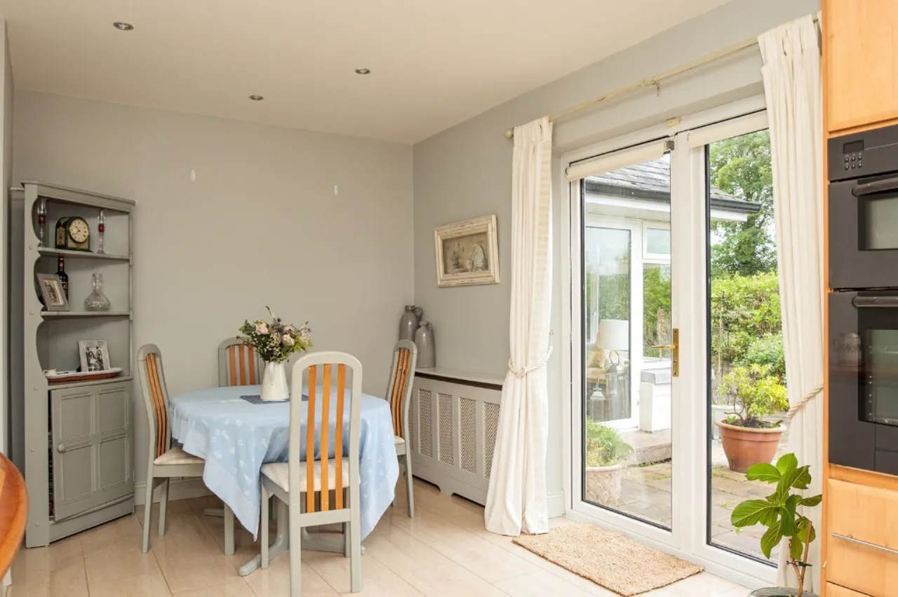 Kitchen Dining Room (5.03 x 0.51) + (6.08 x 2.57) This impressive, light-filled open-plan kitchen and dining area is situated at the rear of the property, Expertly designed and installed by Sinnotts Kitchens, the space features a comprehensive range of wall and floor units topped with elegant Quartz Marble countertops. High-quality integrated appliances include a Bosch double oven with grill, a Bosch hob with a sleek built-in extractor fan, a Bosch dishwasher, and a Bosch fridge/freezer. The cream tiled flooring and recessed lighting throughout. The generously proportioned dining area comfortably accommodates a large dining table and chairs, making it ideal for both everyday family meals and formal entertaining. A large double window to the side floods the space with natural light, while double glass-panelled doors open directly onto the patio and garden. Additional features include a stylish radiator cover.