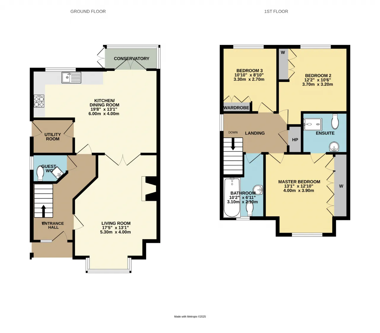 Master Bedroom 3.97m x 3.38m + 3.06m x 0.42m A fine-sized and bright master bedroom positioned to the front of the property. Extensive built-in wardrobes and fitted carpet.