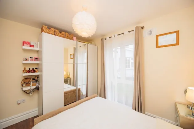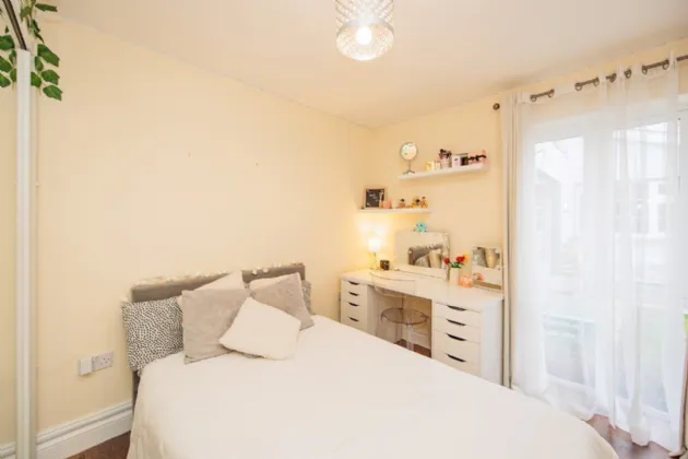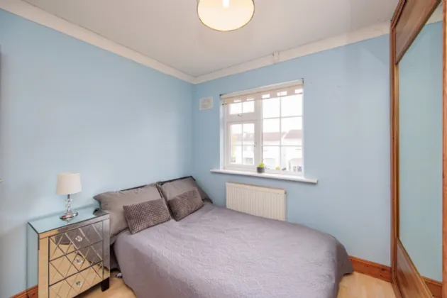 Bedroom Three 3.0bm x 2.82m A double bedroom located to the front of the property. Laminate wooden floor, ceiling coving and centre rose. Built-in sliding wardrobes.