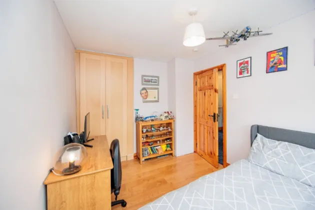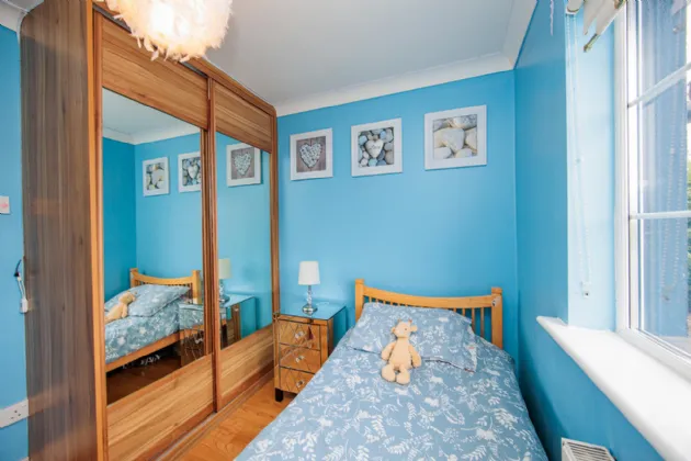 Bedroom Four 2.50m x 2.42m A single bedroom positioned to the rear of the property. Laminate floor and ceiling coving. Built-in sliding wardrobes.