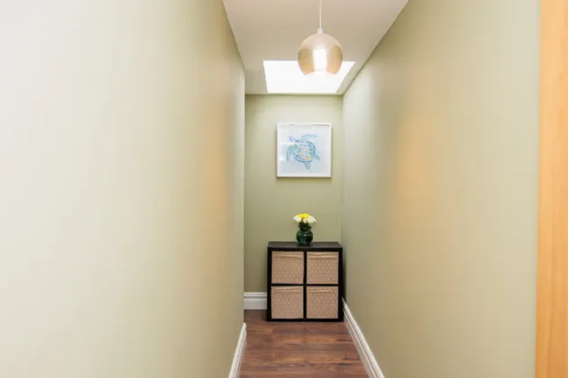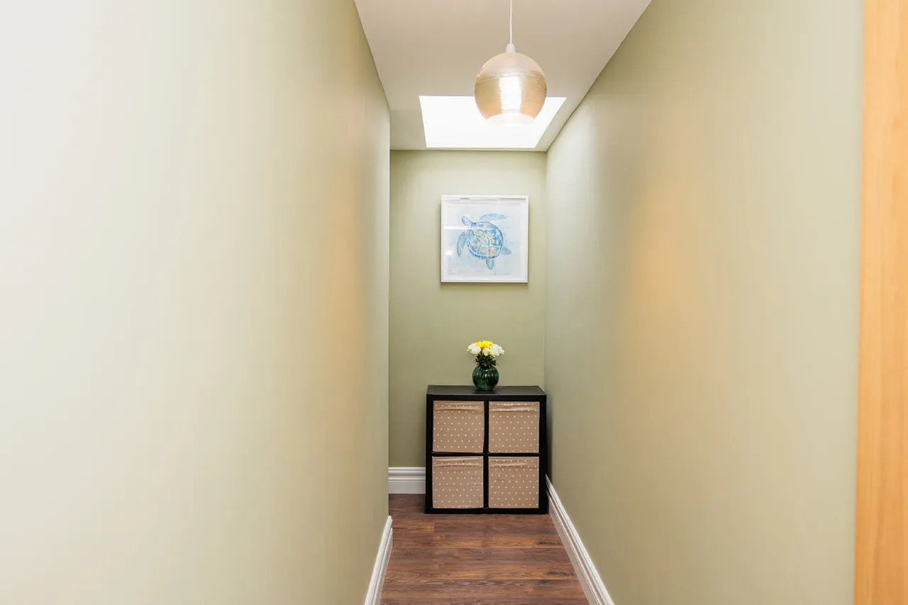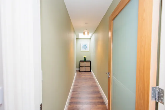 Connecting Hall 4.47m x 0.99m + 3.92m x 0.99m L-shaped connecting hall fitted with a roof light. Laminate Walnut floor.