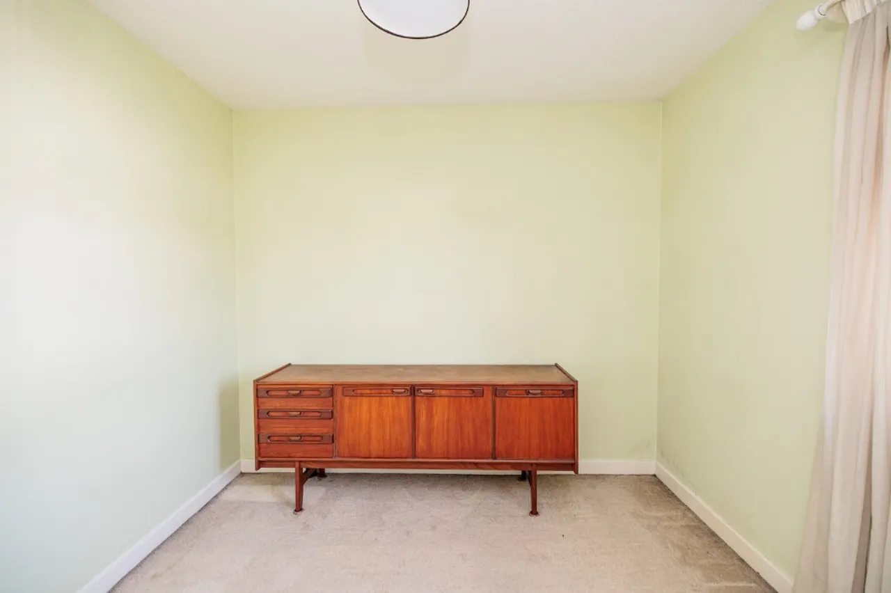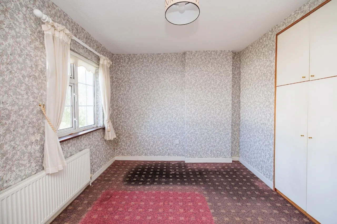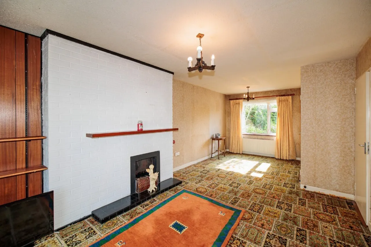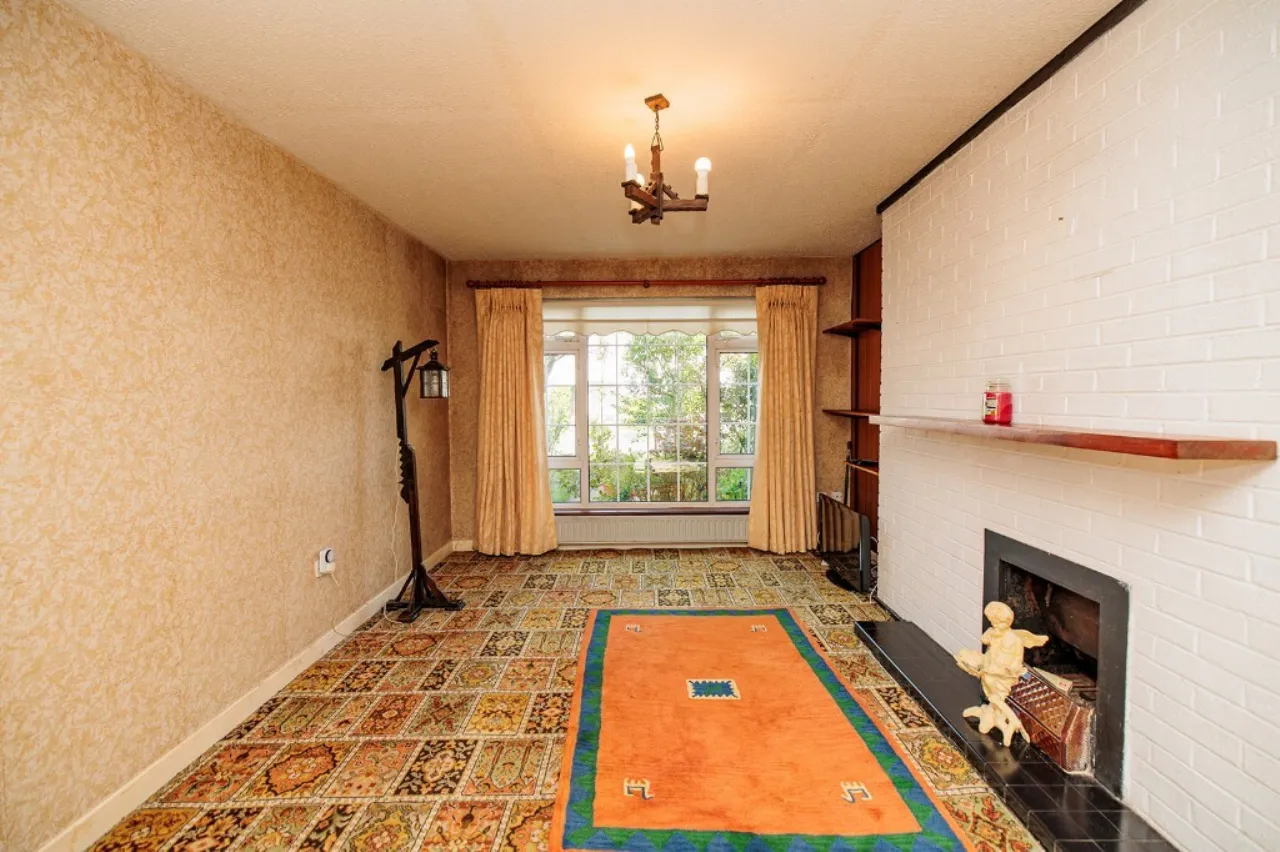 Living Room 3.40m x 4.51m + 2.67m x 2.60m This dual-aspect living room offers a bright and airy space with natural light streaming in from two directions. The brick-faced fireplace, complete with a tiled hearth and timber mantle, serves as the focal point of the room. Carpeted flooring, this a functional space with potential for modernisation.