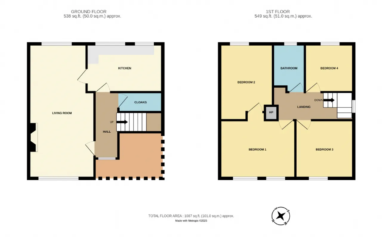 Cloaks 1.79m x 0.96m + 2.25m x 0.75m Adjacent to the hall is a cloakroom, offering a practical and convenient storage space for coats, shoes, and other belongings.