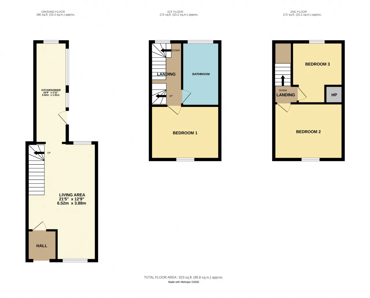 Ground Floor: Entrance hall, a welcoming living room with bay window and open fireplace, leading through to a well-appointed kitchen. First Floor: Landing with side window, one spacious bedroom, and the main bathroom. Second Floor: Landing with side window, master bedroom and an additional bedroom. This unique home combines period character with practical design, making it an ideal choice for those seeking a distinctive property in a vibrant town setting.