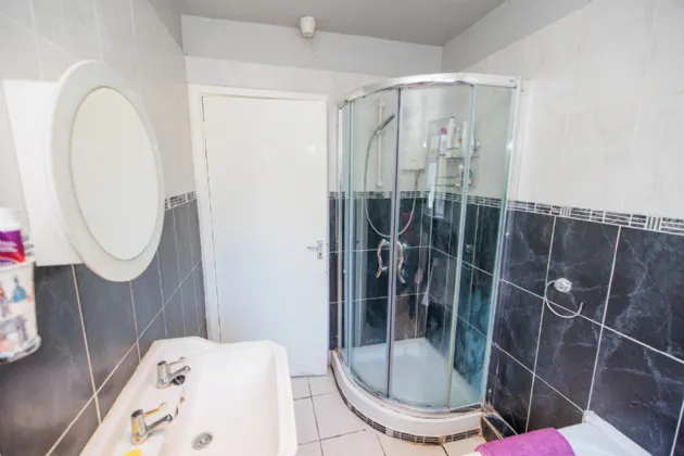 Kitchen / Dining Room 4.23m x 3.67m A spacious and bright dual aspect room positioned to the rear of the property. Fitted wall and floor units with tiled backsplash and 1.5 bowl kitchen sink. Freestanding electric cooker and integrated extractor fan. There is plenty of space for a table and chairs for family dining and entertaining. Wall mounted vertical radiator. Tiled flooring throughout. A PVC door with glass insert gives acess out to the rear hall.