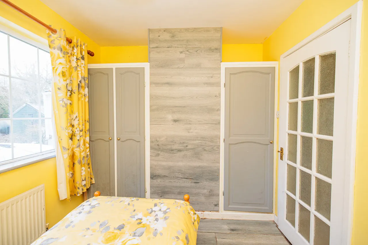 Bedroom One 3.04m x 2.46m A large single bedroom located to the rear of the property. Fitted wardrobes and wooden flooring.