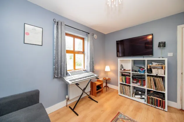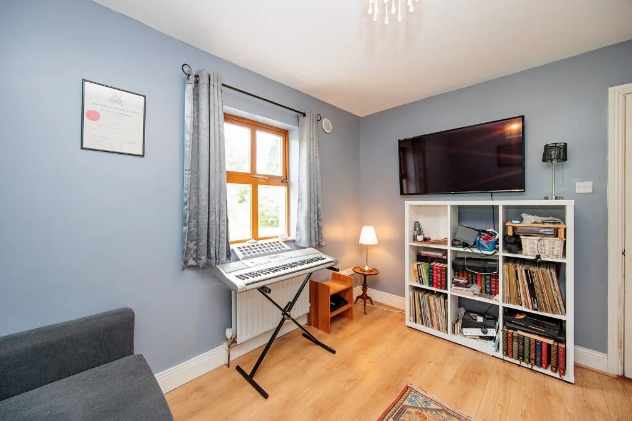 Family Room / Den 3.11m x 4.08m A cosy room with a west-facing gable end window with views of the side garden. Wooden floor.