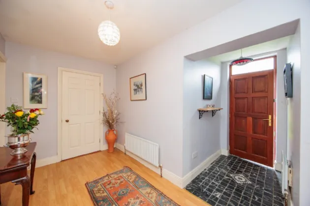 Entrance Porch 1.16m x 1.79m A painted solid Teak front door with fanlight opens into a welcoming entrance porch. Tiled floor. Open plan access through to the entrance hall.