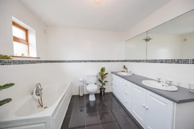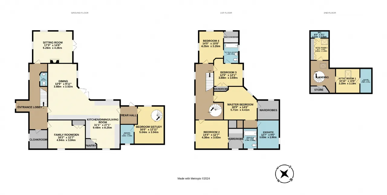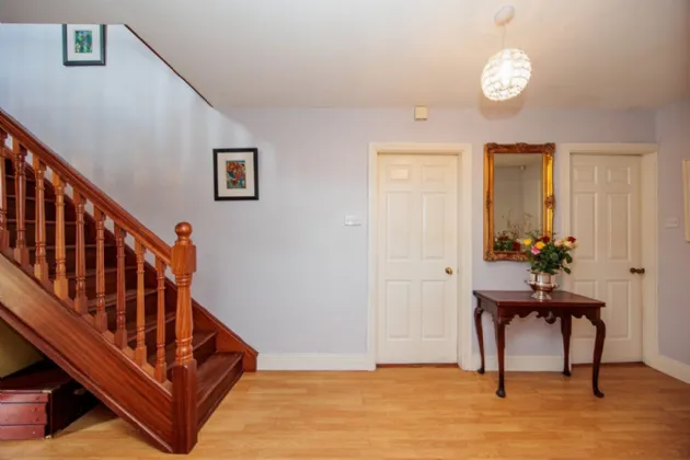 The property extends to 307 Sq. M/ 3,305 Sq. Ft. approx. (including attic space) spanning over three levels. The layout at ground level comprises: entrance porch, entrance hall, guest WC, cloakroom, sitting room, family room/den, kitchen/dining/living room, rear hall and bedroom five/study (with en-suite). A spiral staircase in bedroom five/study leads up to a large attic space.