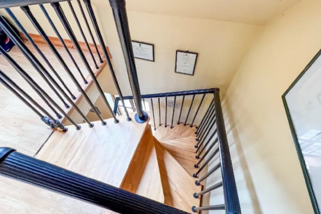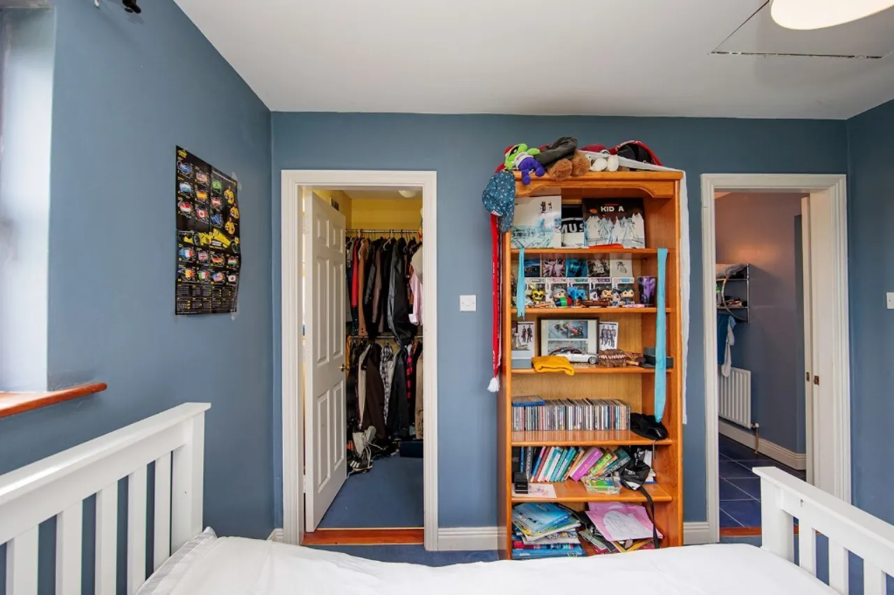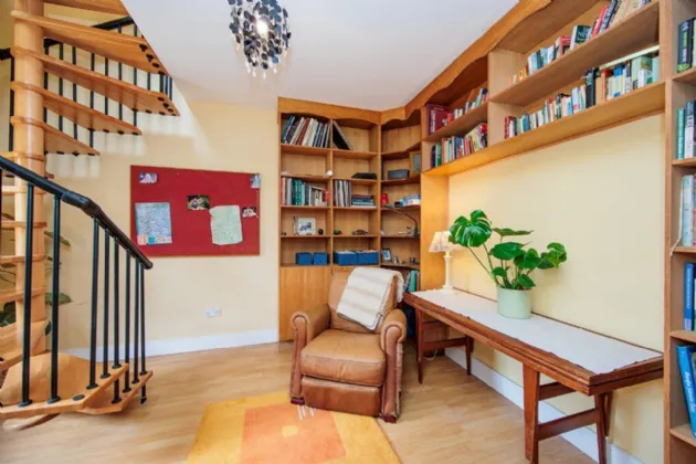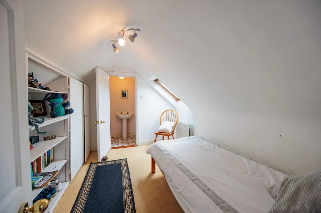 Bedroom Five / Study 2.33m x 0.34m + 4.10m x 3.05m A versatile room, currently used as a study. Built-in floor to ceiling shelving and storage cupboards. Window to the rear and wooden floor. A spiral staircase leads up to a converted attic space.