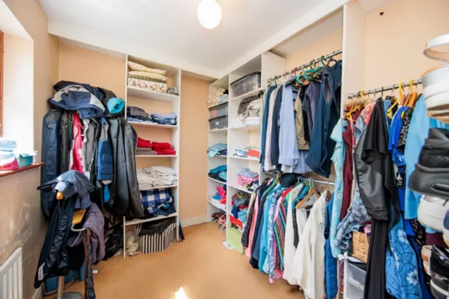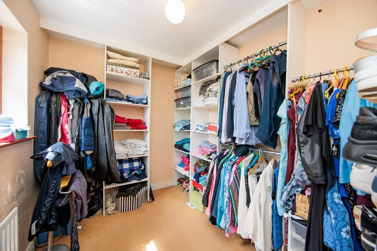 Walk-in Wardrobe 1.41m x 1.77m Fitted hanging space and shelving. Gable end window and fitted carpet.