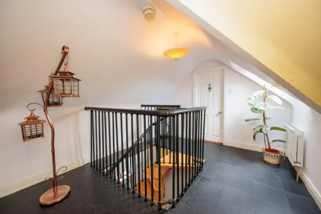 The layout at second floor level comprises: landing area, two attic rooms and a storage room, two toilets one with a shower.