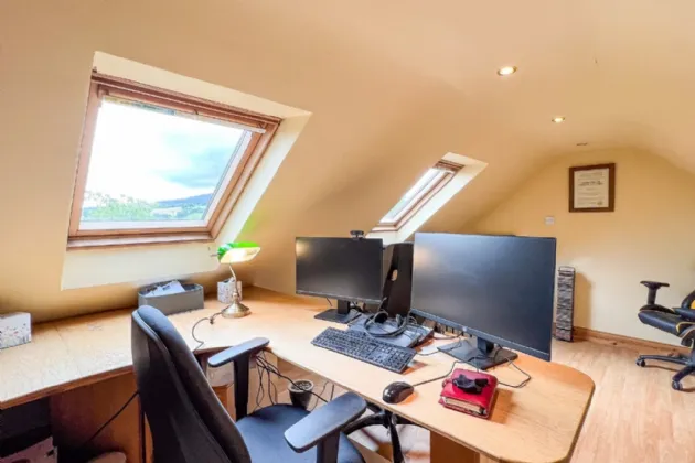 Attic Space 3.11m x 4.08m Two Velux windows are fitted in the room to the rear. Wooden floor, recessed lighting and built-in shelving and built in desk currently used for working from home.