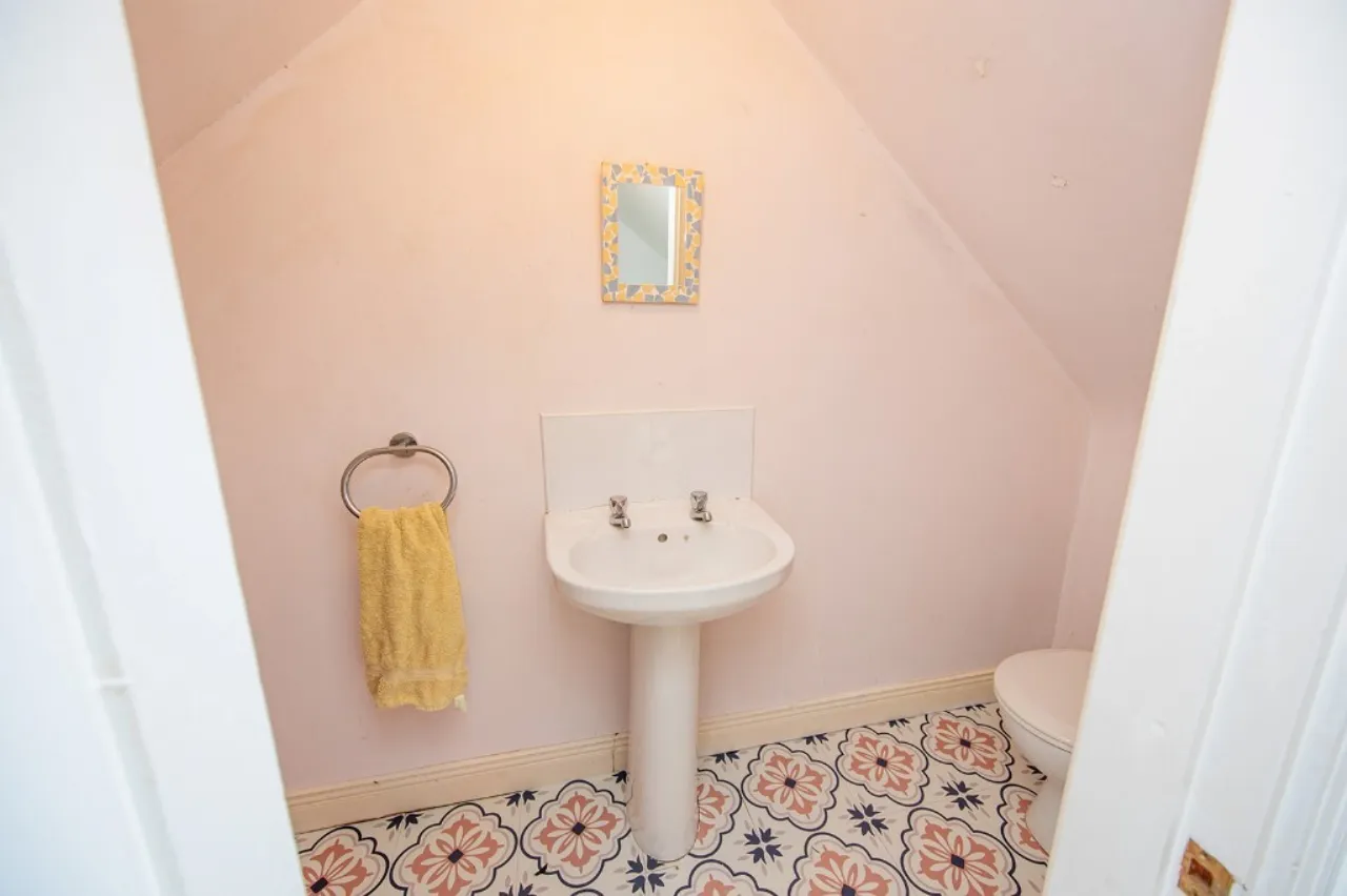 Guest WC 1.67m x 0.82m Comprising WC and wash hand basin. Tiled floor and extractor fan.
