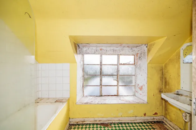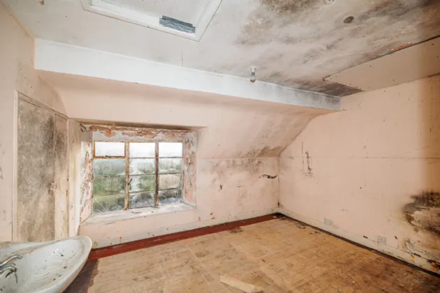 Living Room 2.72m x 4.64m A light-filled and spacious room with views of the front garden and the surrounding countryside. The original architrave and window shutters are still intact. Open fireplace with decorative wooden surround and cast-iron insert.