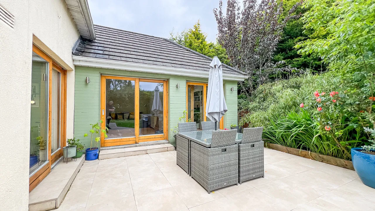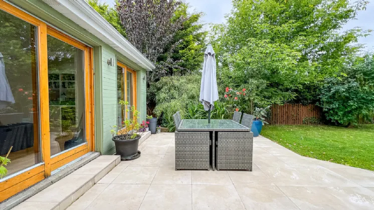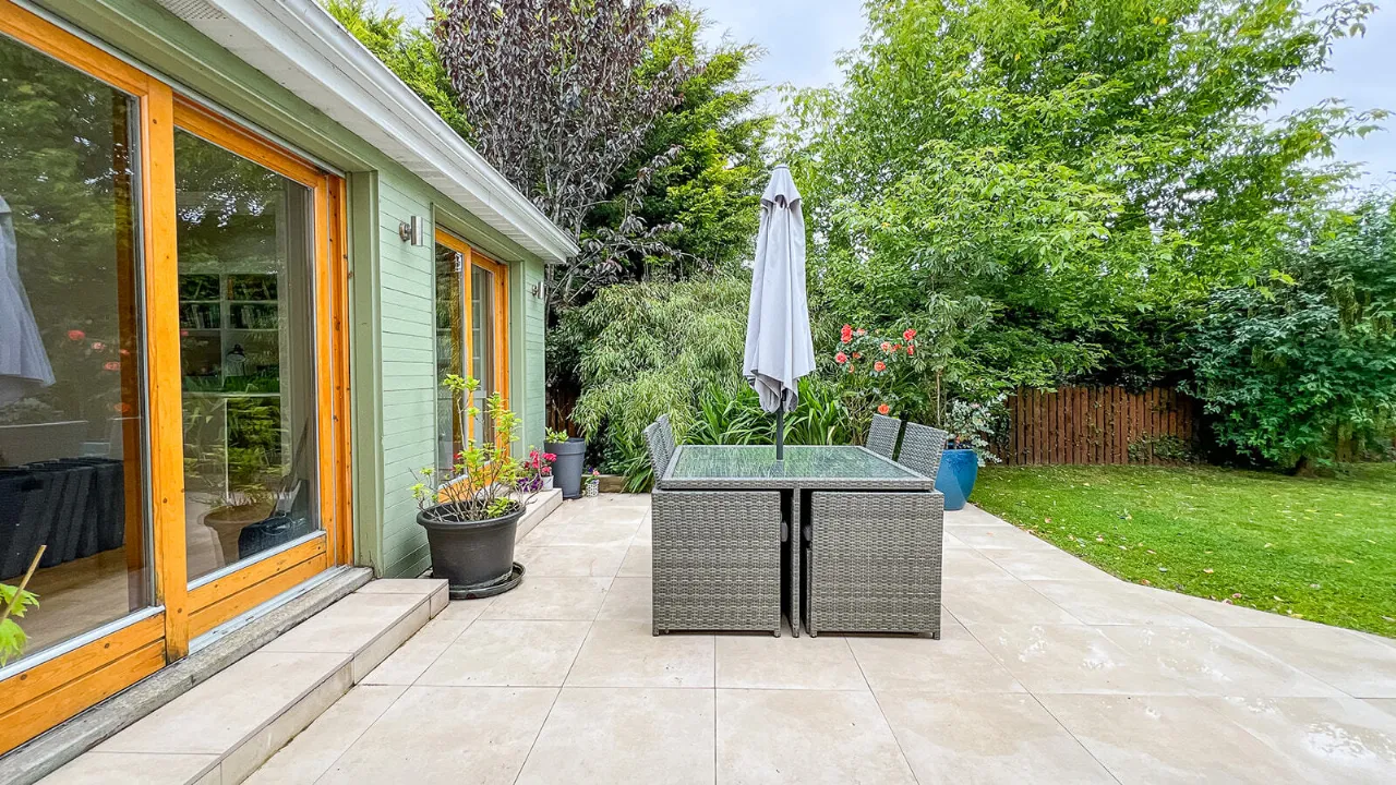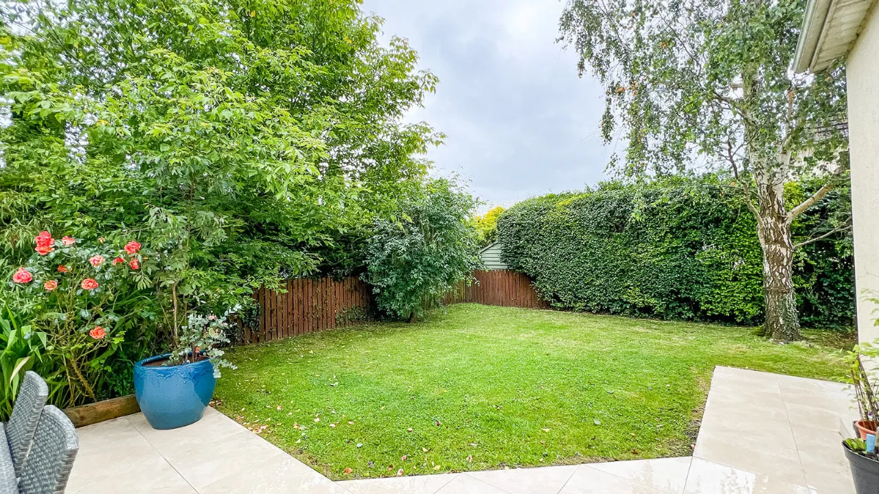 The magnificent and secluded rear garden is a haven of tranquility and perfect as a secure children’s play area. A neat lawn is bordered by mature trees, hedging and colourful planting. A Porcelain patio area is perfect for al-fresco dining and entertaining.