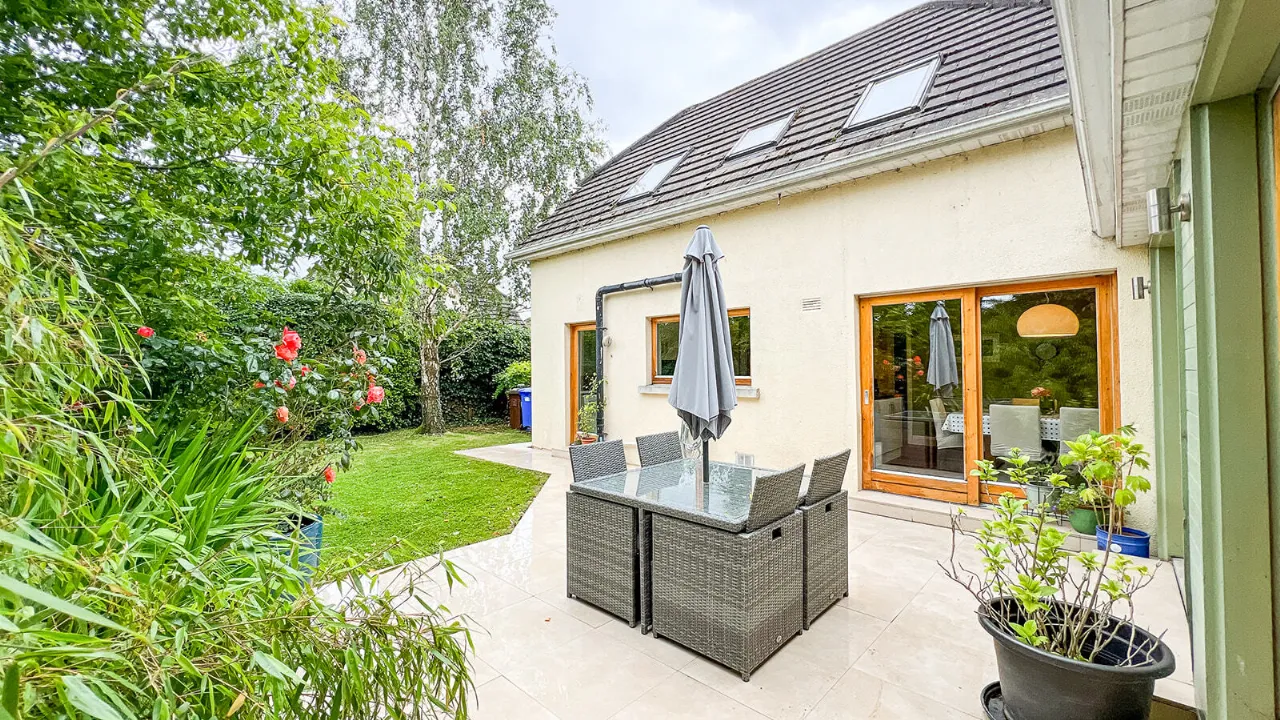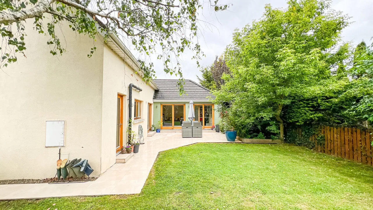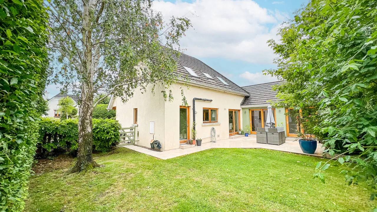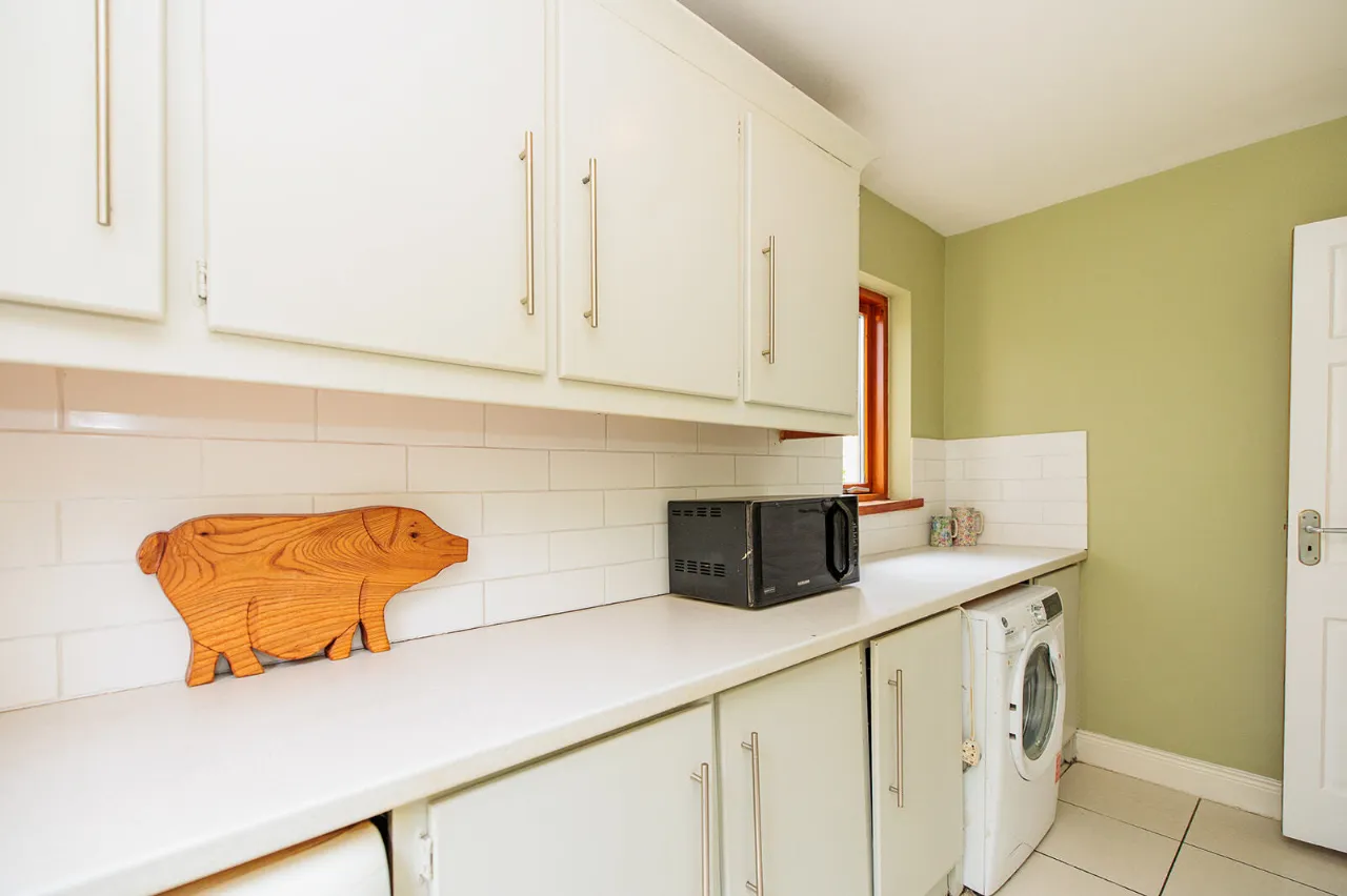 The light-filled and well-designed layout extends to 180 Sq. M. / 1,938 Sq. Ft. spanning over two levels. The layout at ground floor level comprises – entrance hall, guest WC, sitting room, living room, kitchen/dining room, utility room and bedroom four complete with an en-suite. A useful home office/study completes the layout at ground floor level. The layout upstairs comprises – landing area, two generous sized double bedrooms, a large single bedroom, well-appointed family bathroom and hot press.