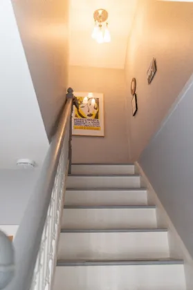 The layout at ground floor level comprises – entrance hall with understairs storage/utility cupboard, an exceptionally large dual aspect double bedroom and a well-appointed bathroom. A striking painted L-shaped staircase leads up to the first-floor level. The layout at first floor level comprises – landing area, impressive open plan living/kitchen/dining room and a sitting room.
