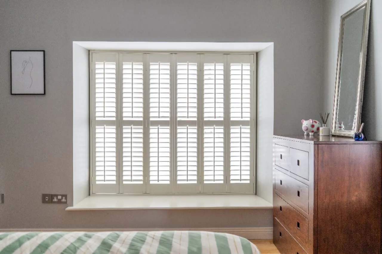 Bedroom 5.19m x 3.73m + 1.86m x 0.45m An exceptionally large dual aspect double bedroom with two deep picture windows, fitted with Plantation Shutters. Junkers Oak flooring. Intercom.