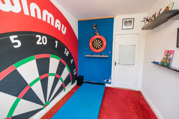 Cloakroom / Hot Press 3.09m x 1.96m Walk-in cloakroom / hot press with fitted shelving, hot water cylinder and coat hanging space. Fitted carpet flooring.