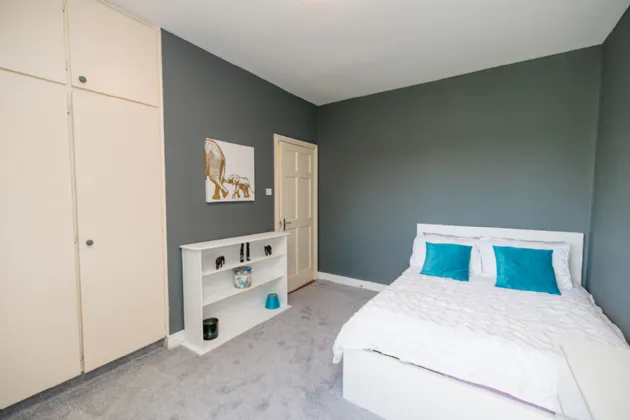 Bedroom Three 3.03m x 3.61m A bright and spacious double bedroom located to the rear of the property. Built-in wardrobes and fitted carpet flooring. 9ft high ceiling.