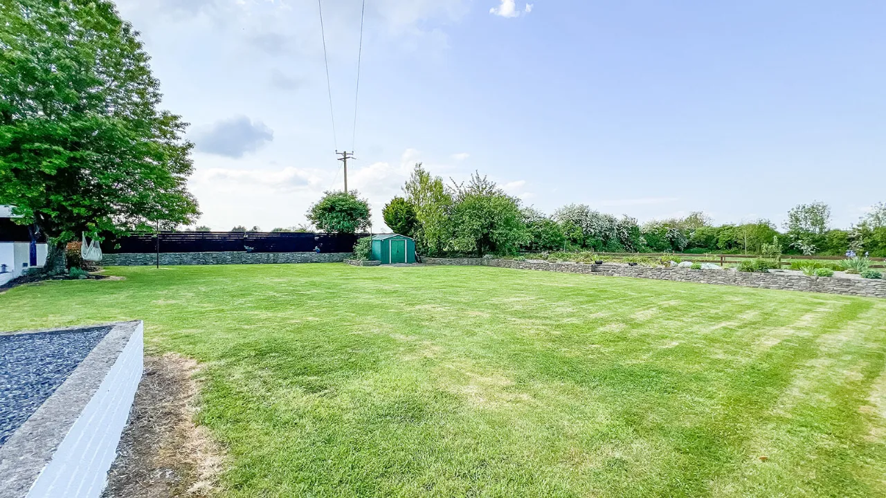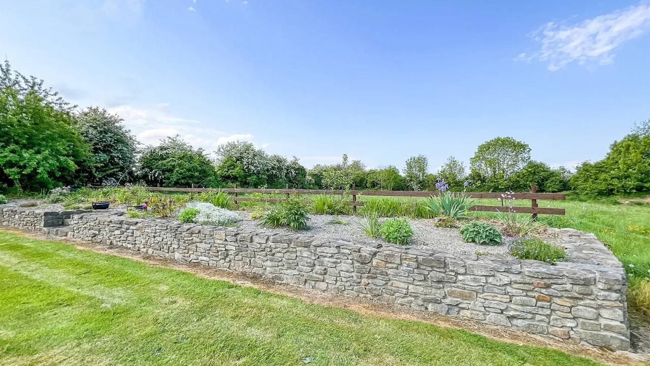 The front garden features an attractive stone boundary wall along with a matching low retaining wall which separates the ship stone parking area from the lawned areas. There is a good selection of mature herbaceous planting in the front garden.