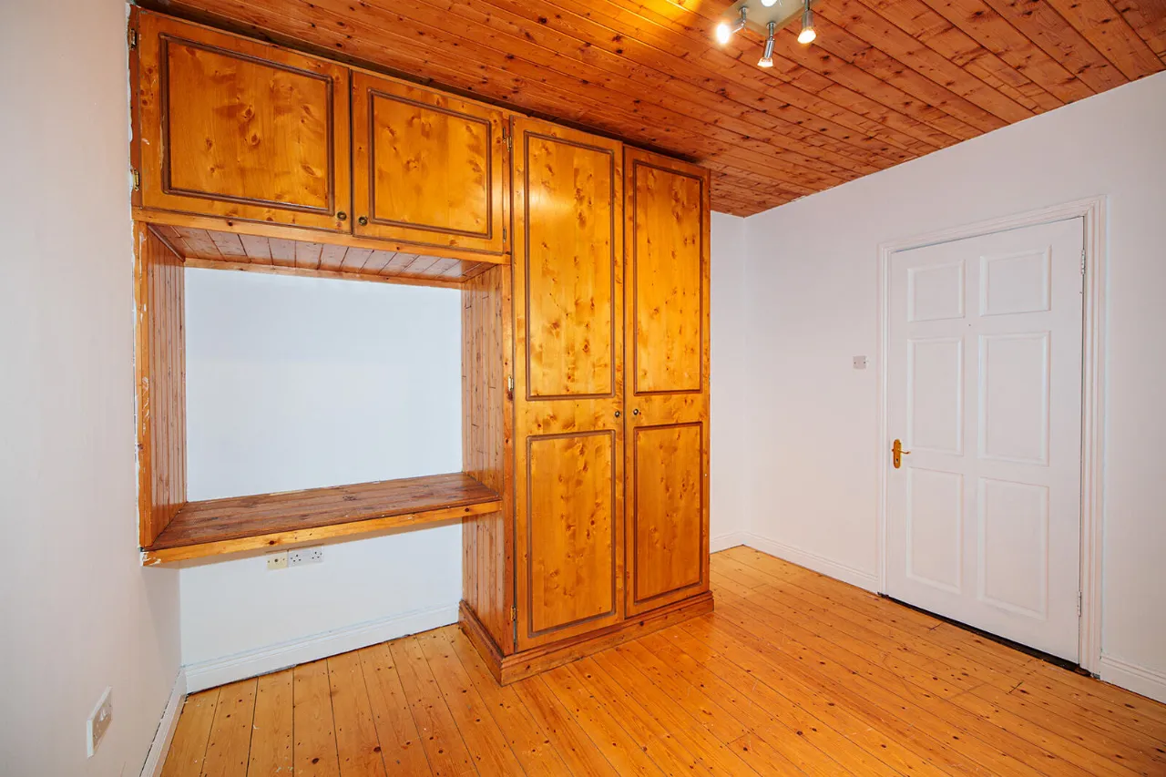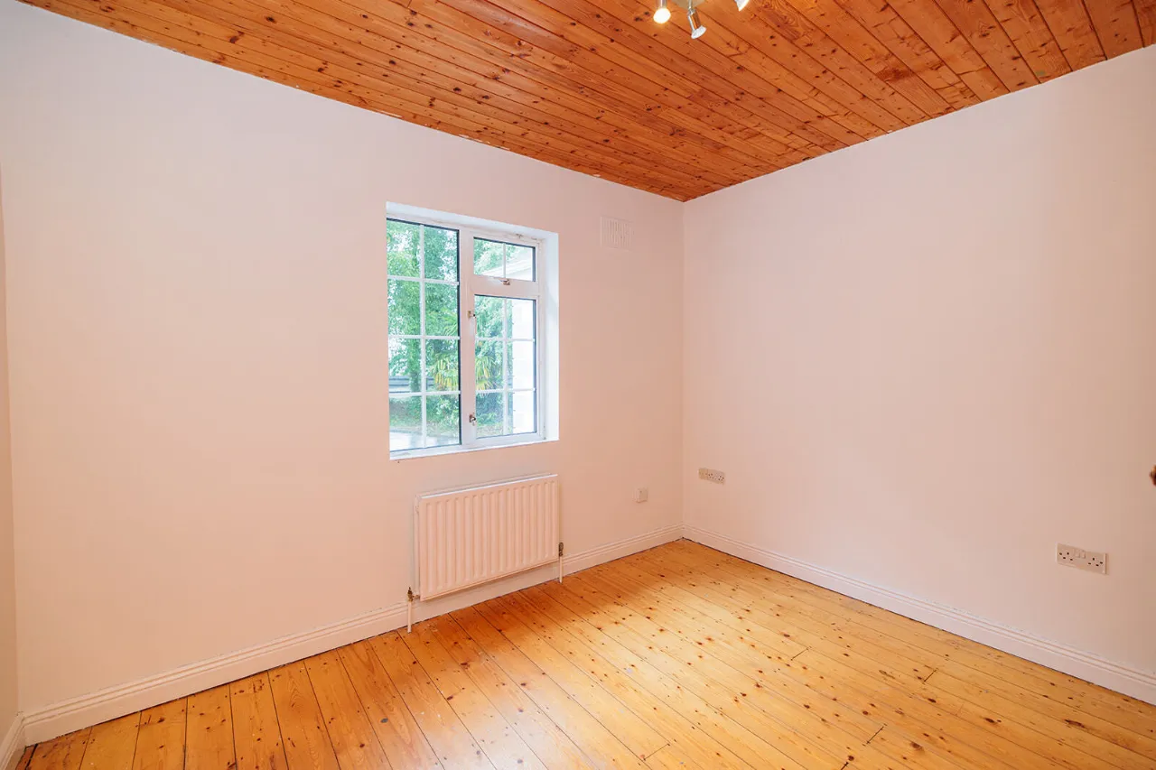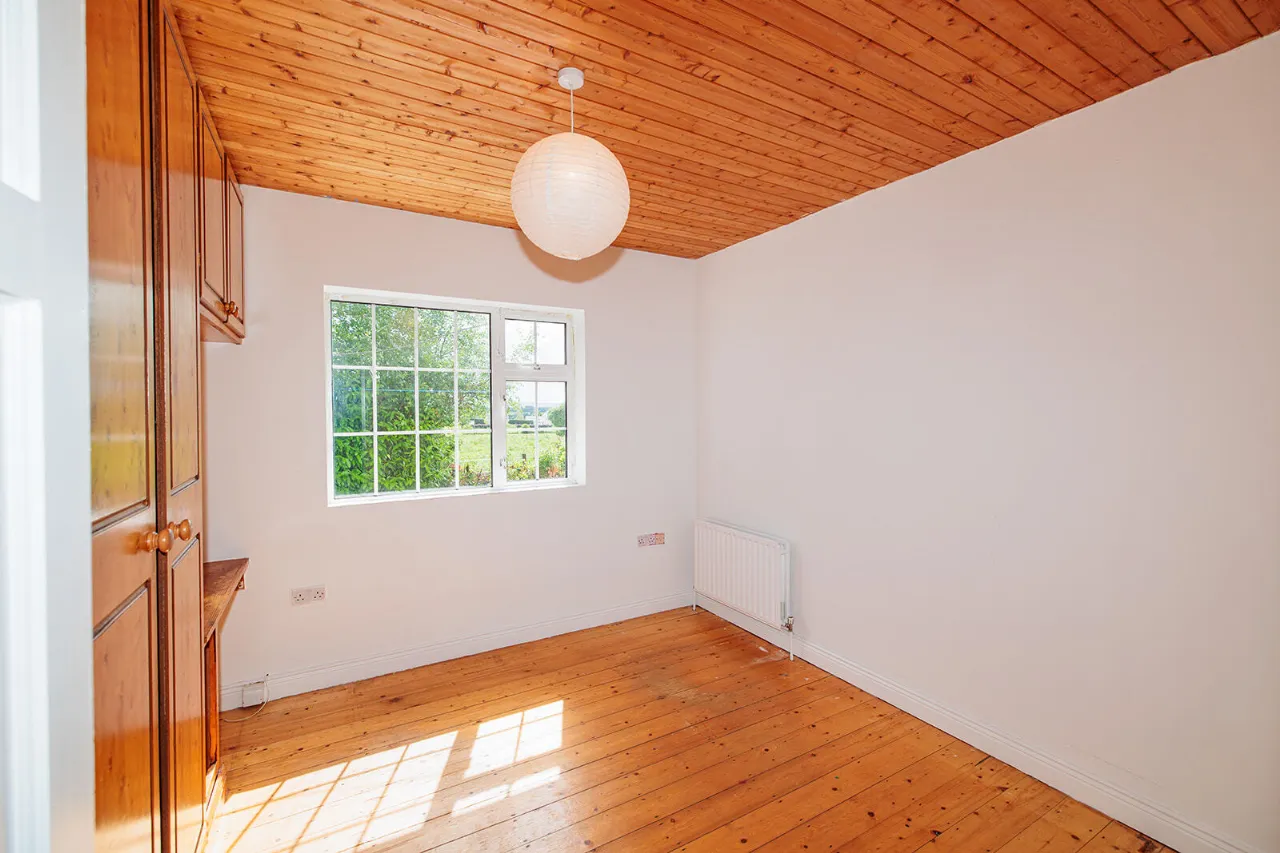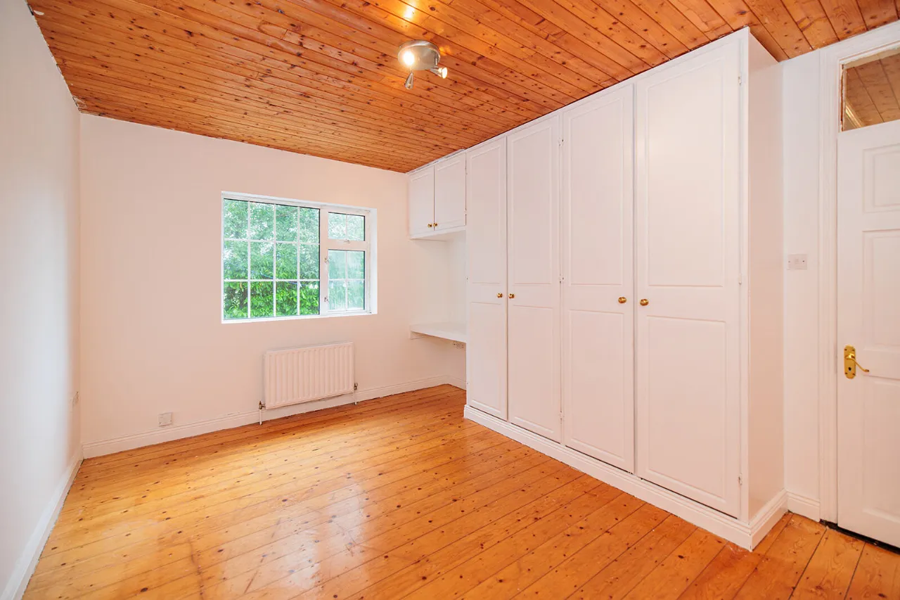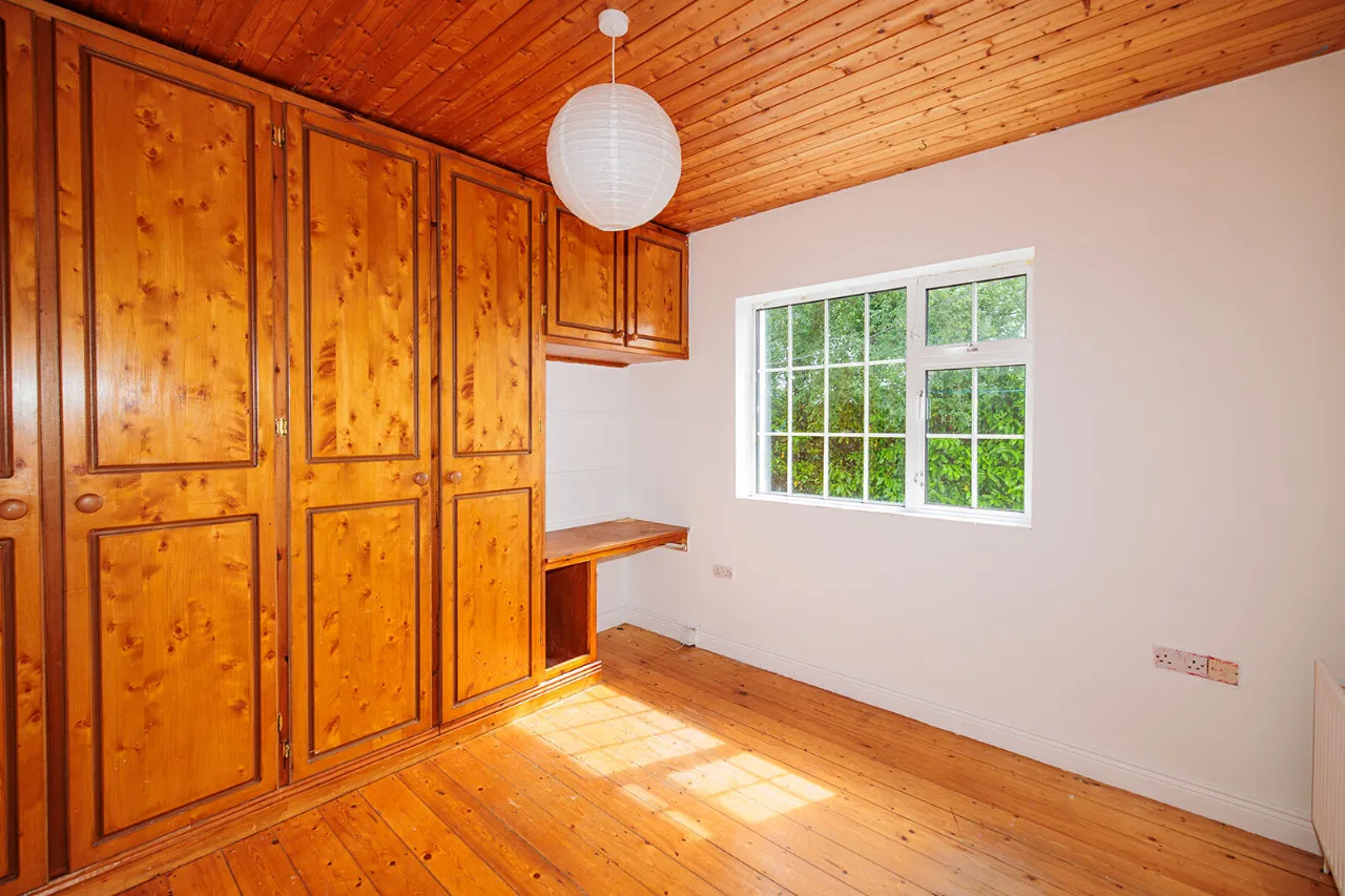 Bedroom Two 4.42m x 3.36m A large and bright double bedroom positioned to the rear of the property. Built-in wardrobes with dressing table. Stained tongue and groove floor and ceiling boards.