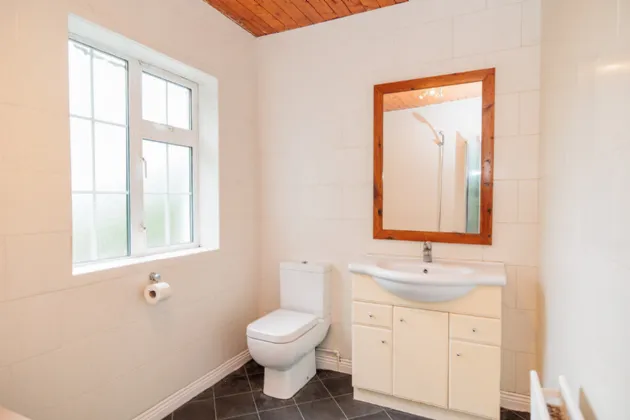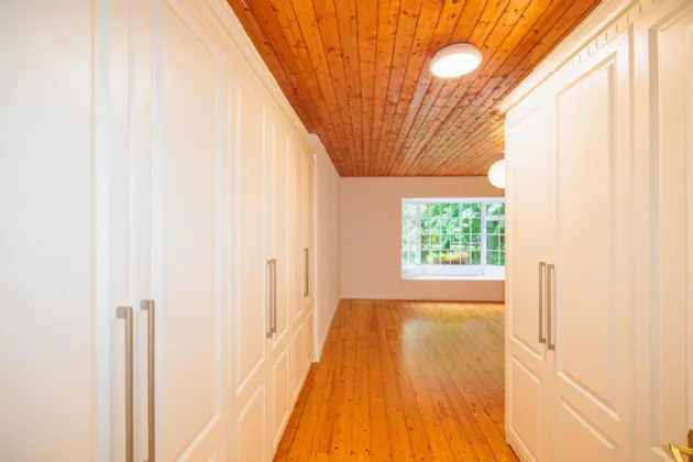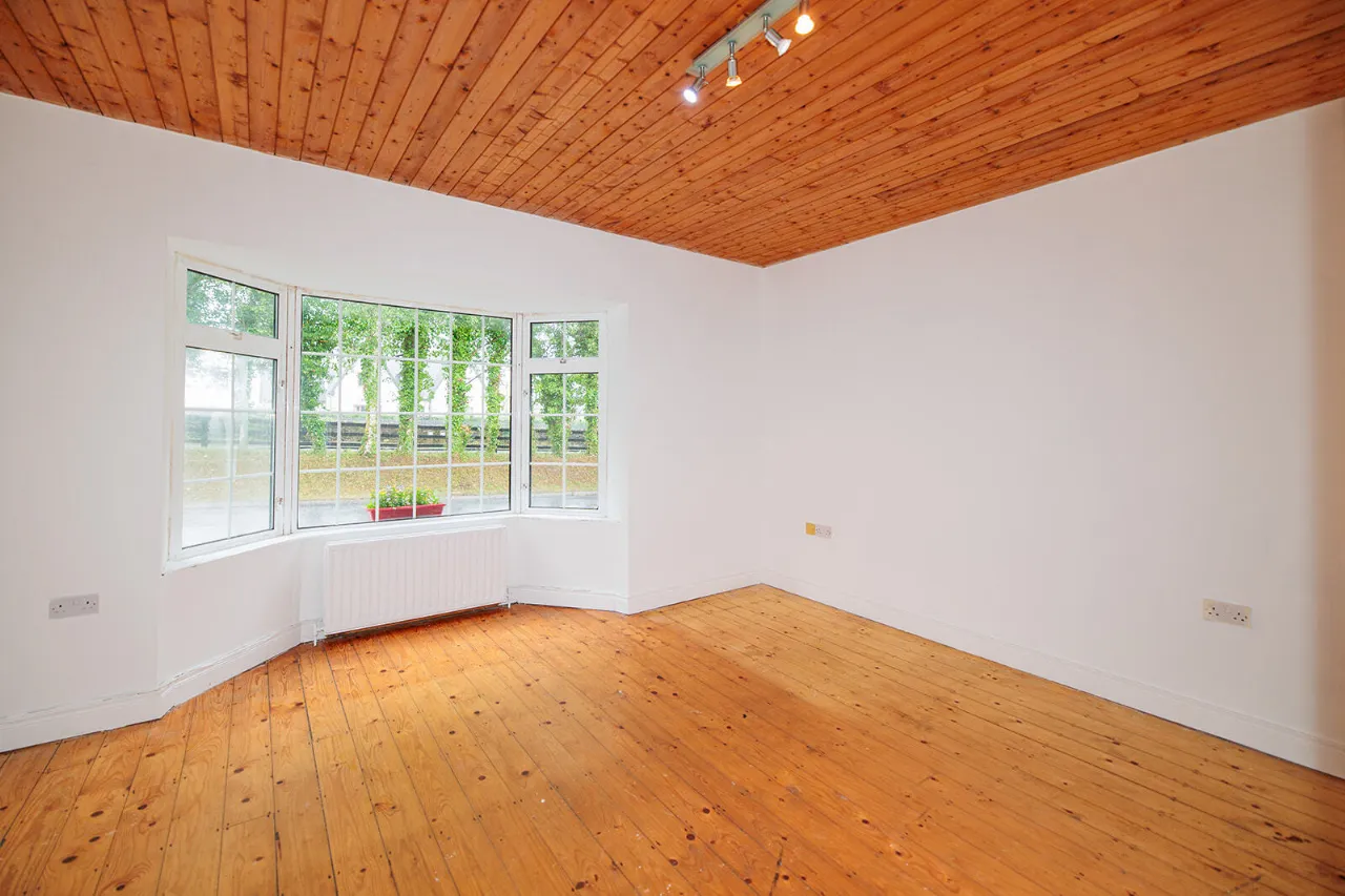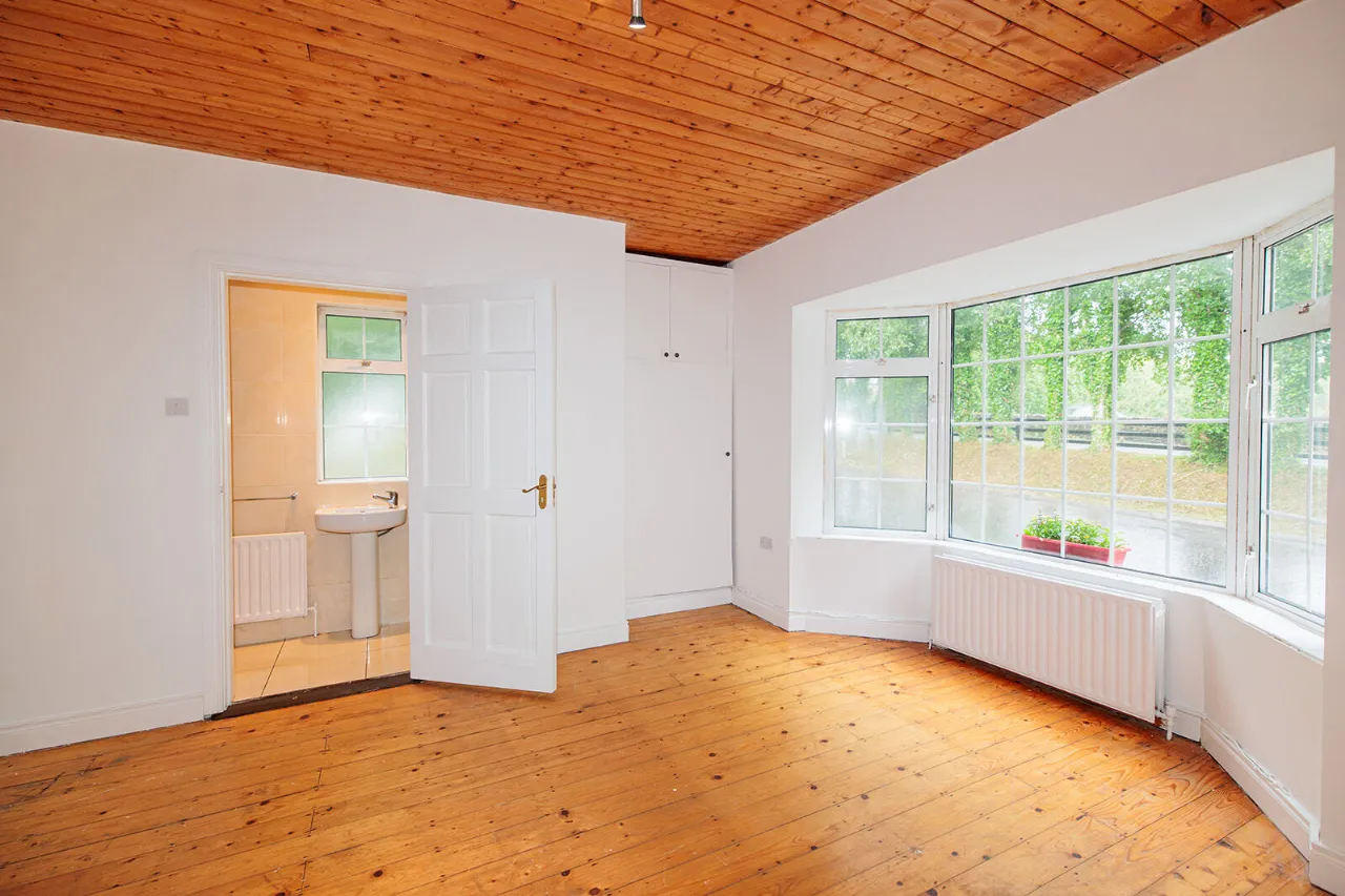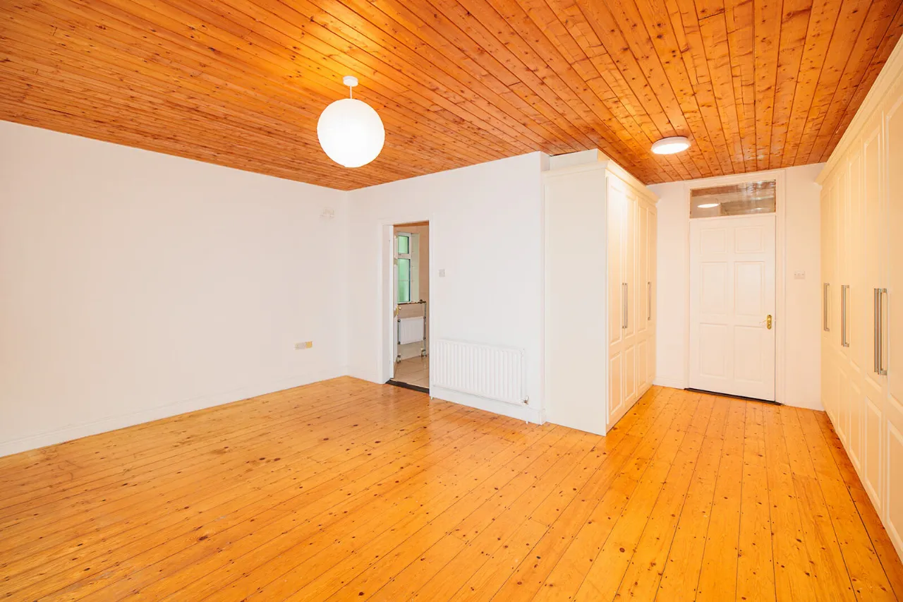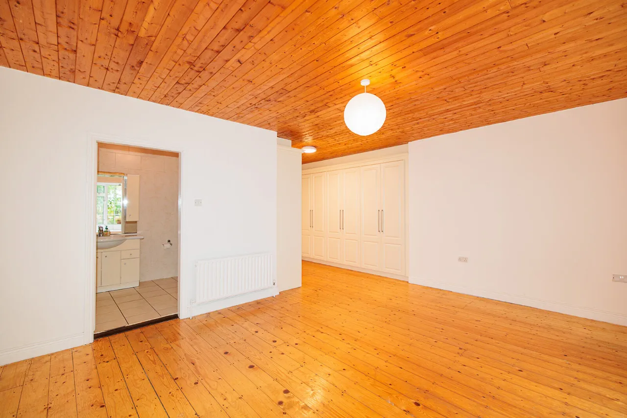 Bedroom Two 4.42m x 3.36m A large and bright double bedroom positioned to the rear of the property. Built-in wardrobes with dressing table. Stained tongue and groove floor and ceiling boards.