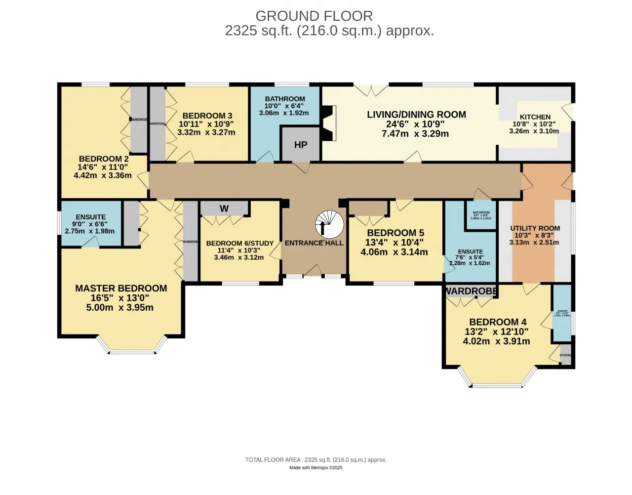 The spacious and light filled accommodation extends to 248 Sq. M. / 2,669 Sq. Ft. approx. (including attic space). The layout at ground floor level comprises – entrance hall, guest WC, living/dining room, kitchen, utility room, five double bedrooms (three with en-suites), study/bedroom six, family bathroom and walk-in hot press. The attic space comprises landing area and four attic rooms.