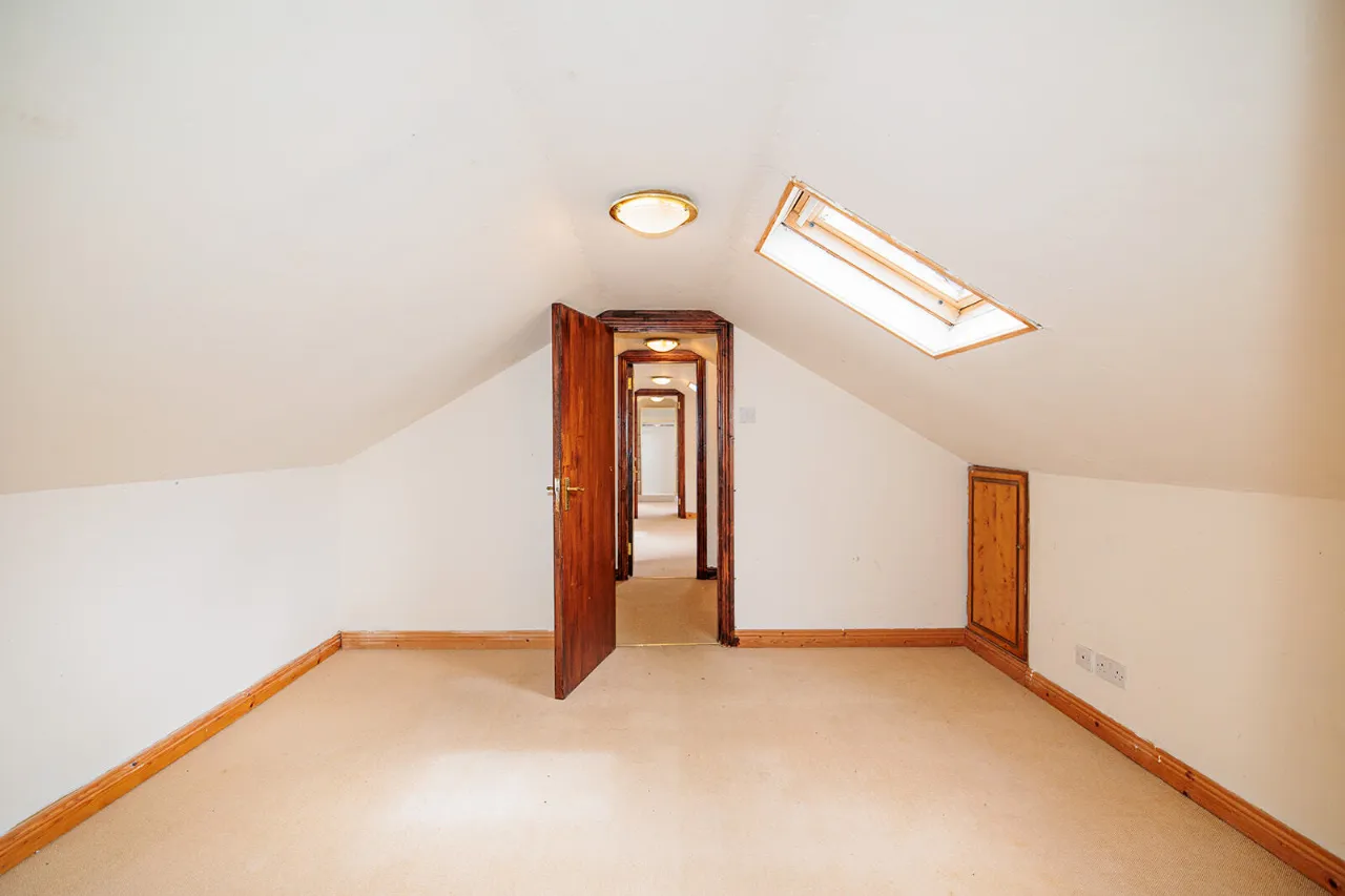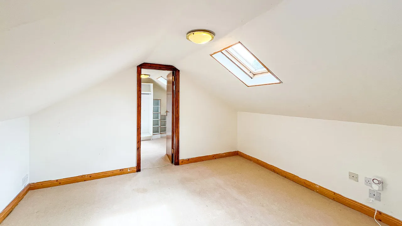 Atic Room Four 3.66m x 2.72m South-facing Velux window fitted in the roof to the rear. Fitted carpet flooring.