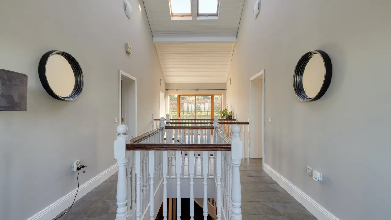 Set on a generous site, the outdoor space is just as impressive as the interiors. The expansive garden is beautifully landscaped, providing plenty of room for outdoor activities and relaxation. The large driveway offers ample parking, and the elevated setting ensures complete privacy, with unobstructed views stretching for miles.