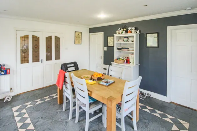 Dining Room / Office / Playroom 4.25m x 3.89m Engineered wood flooring, double doors to kitchen, radiator, coving, fibre broadband connection point.